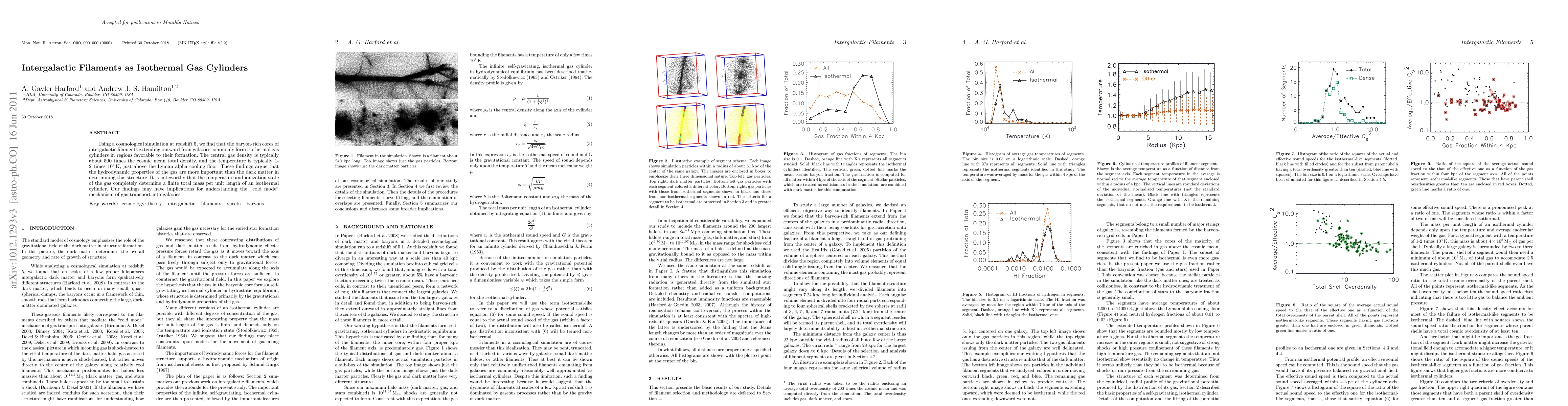 This research reveals that the baryon-rich cores of intergalactic filaments form isothermal gas cylinders at redshift 5, with central densities 500 times the cosmic mean and temperatures around 1-2 x 10^4 K. The study emphasizes the importance of hydrodynamic properties over dark matter in shaping these structures.
