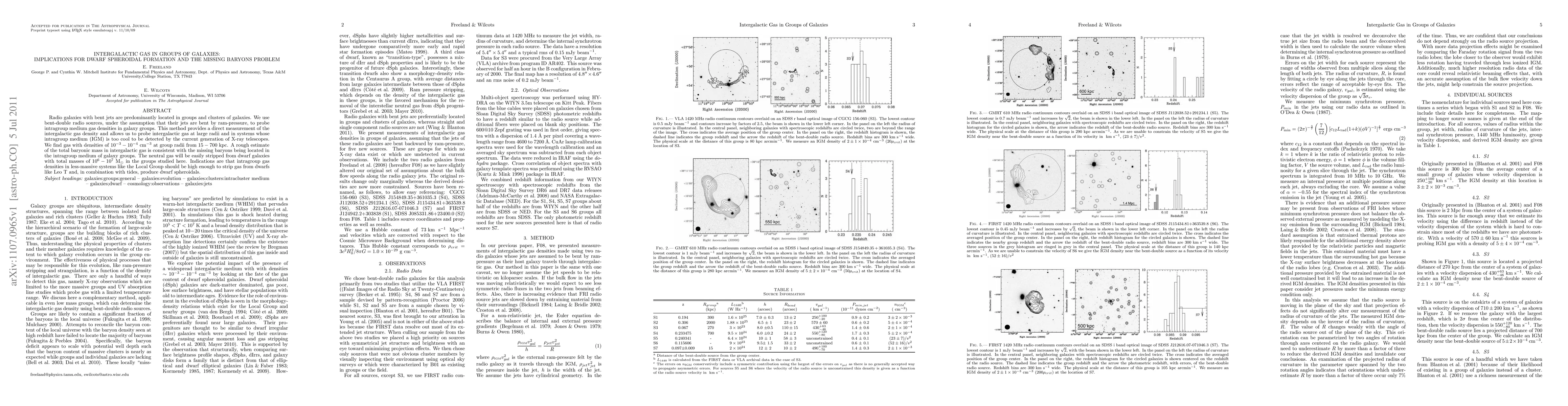 Radio galaxies with bent jets are predominantly located in groups and clusters of galaxies. We use bent-double radio sources, under the assumption that their jets are bent by ram-pressure, to probe intragroup medium (IGM) gas densities in galaxy groups. This method provides a direct measurement of the intergalactic gas density and allows us to probe IGM gas at large radii and in systems whose IGM is too cool to be detected by the current generation of X-ray telescopes. We find gas with densities of 10^(-3)-10^(-4) per cubic centimeter at group radii from 15-700 kpc. A rough estimate of the total baryonic mass in intergalactic gas is consistent with the missing baryons being located in the IGM of galaxy groups. The neutral gas will be easily stripped from dwarf galaxies with total masses of 10^6-10^7 solar masses in the groups studied here. Indications are that IGM gas densities in less-massive systems like the Local Group should be high enough to strip gas from dwarfs like Leo T and, in combination with tides, produce dwarf spheroidals.