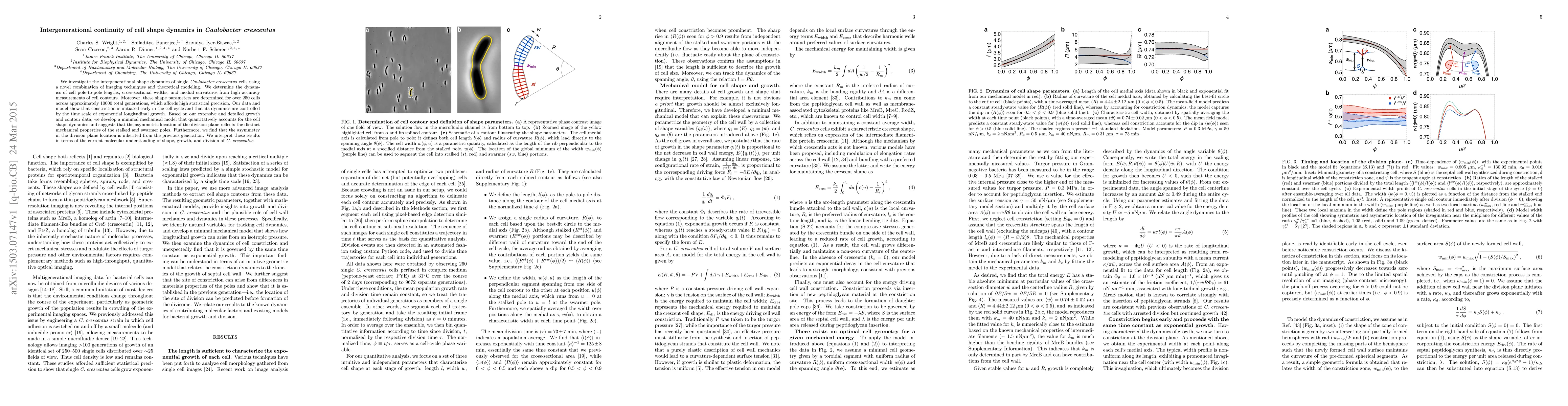 This study uses advanced imaging and theoretical modeling to analyze the intergenerational continuity of cell shape dynamics in Caulobacter crescentus, revealing that constriction initiation and its control are linked to longitudinal growth, and that the asymmetric division plane location is inherited from the previous generation.