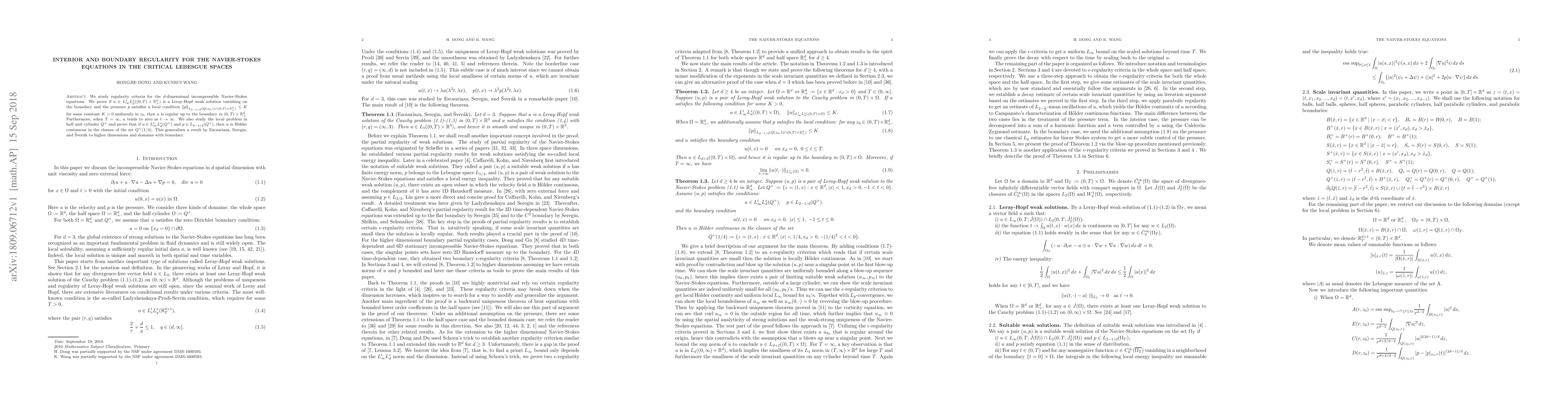 The paper establishes regularity criteria for incompressible Navier-Stokes equations in critical Lebesgue spaces, showing that certain conditions on the pressure function and initial velocity lead to regular solutions up to the boundary.