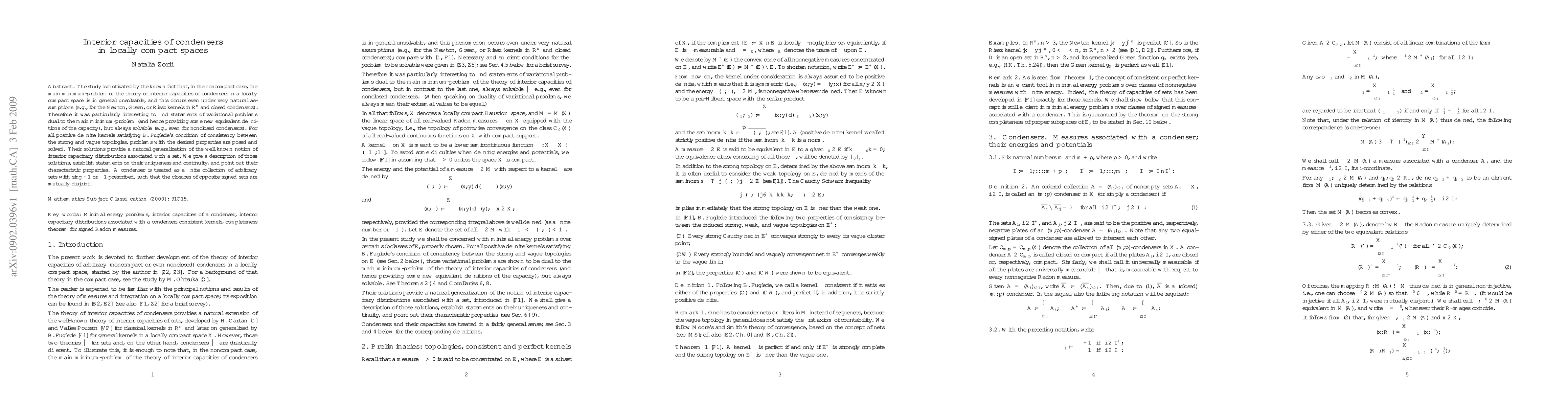 This paper explores the solvability of variational problems related to the interior capacities of condensers in locally compact spaces, providing new equivalent definitions of capacity that are always solvable, even for nonclosed condensers. It generalizes the notion of interior capacitary distributions and establishes uniqueness, continuity, and characteristic properties of the solutions.