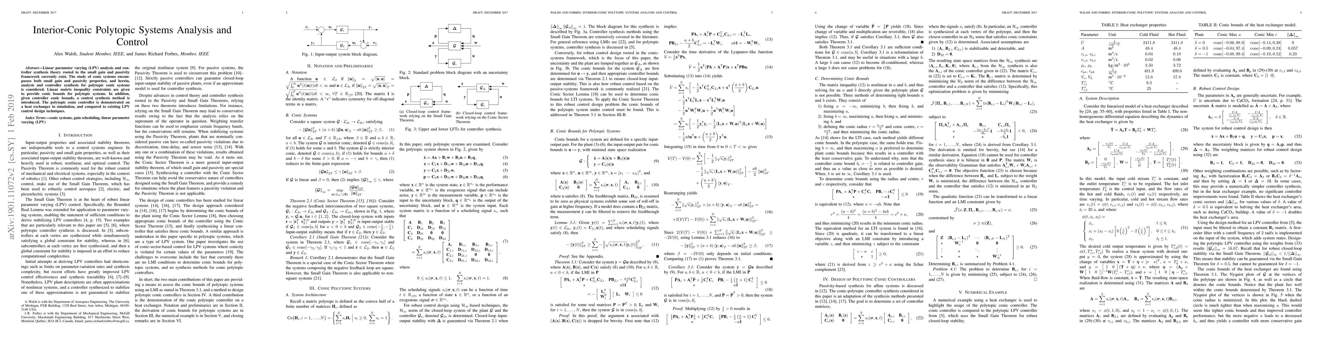 This paper develops analysis and controller synthesis methods for polytopic conic systems using linear matrix inequality constraints for conic bounds. The proposed control synthesis method is demonstrated and compared to existing LPV techniques through a heat exchanger simulation.