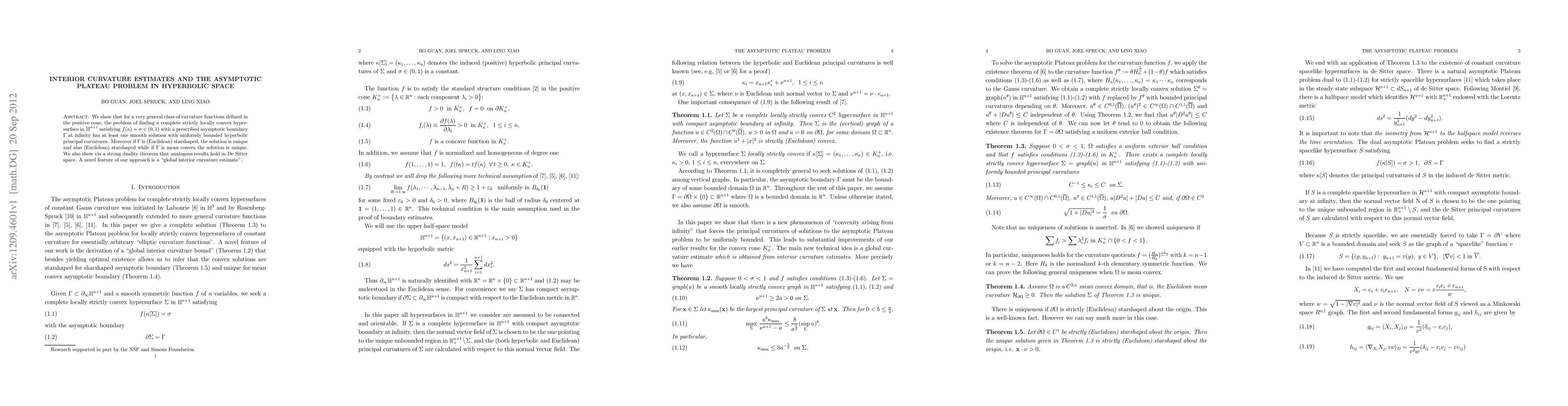 We show that for a very general class of curvature functions defined in the positive cone, the problem of finding a complete strictly locally convex hypersurface in $H^n+1$ satisfying $f(\kappa)=\sigma\in(0, 1)$ with a prescribed asymptotic boundary $\Gamma$ at infinity has at least one smooth solution with uniformly bounded hyperbolic principal curvatures. Moreover if $\Gamma$ is (Euclidean) starshaped, the solution is unique and also (Euclidean) starshaped while if $\Gamma$ is mean convex the solution is unique. We also show via a strong duality theorem that analogous results hold in De Sitter space. A novel feature of our approach is a "global interior curvature estimate".