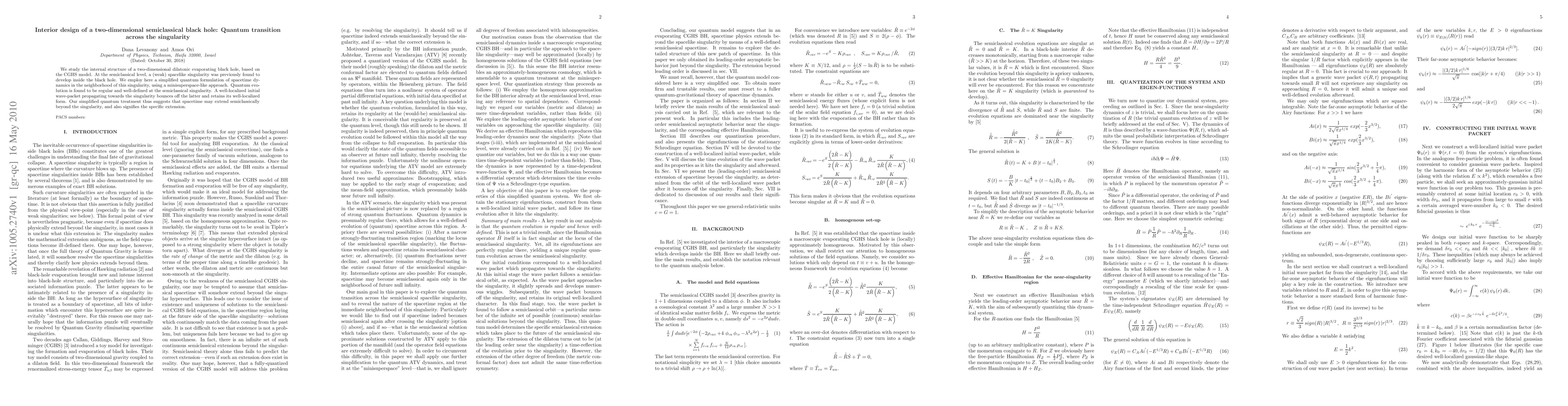 This paper explores the interior of a two-dimensional dilatonic black hole using the CGHS model, revealing a semiclassical singularity. A simplified quantum approach shows that quantum evolution is regular at the singularity, suggesting spacetime may extend beyond it.