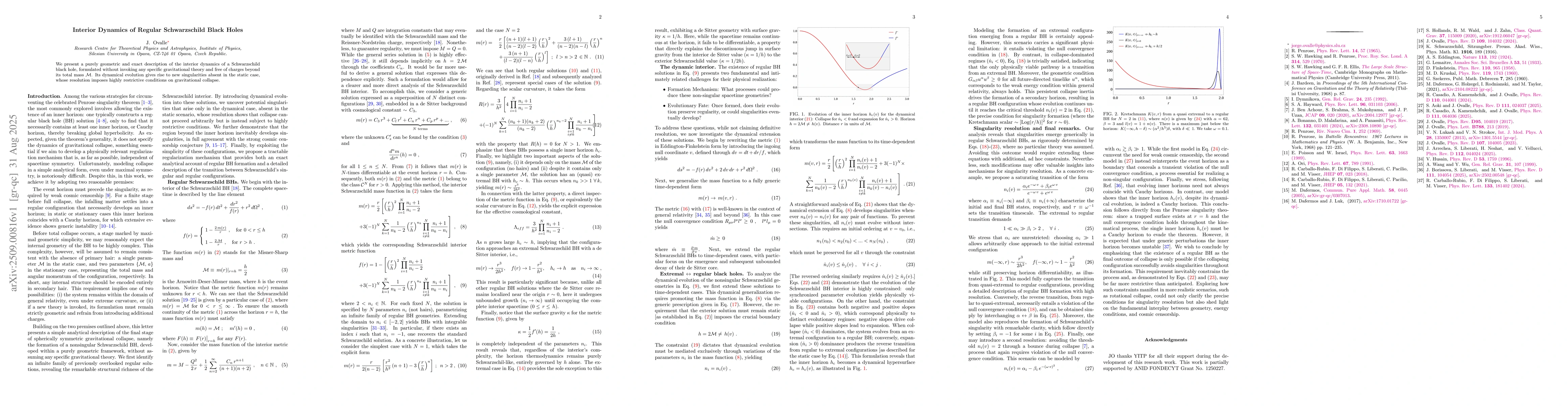 We present a purely geometric and exact description of the interior dynamics of a Schwarzschild black hole, formulated without invoking any specific gravitational theory and free of charges beyond its total mass ${\cal M}$. Its dynamical evolution gives rise to new singularities absent in the static case, whose resolution imposes highly restrictive conditions on gravitational collapse.