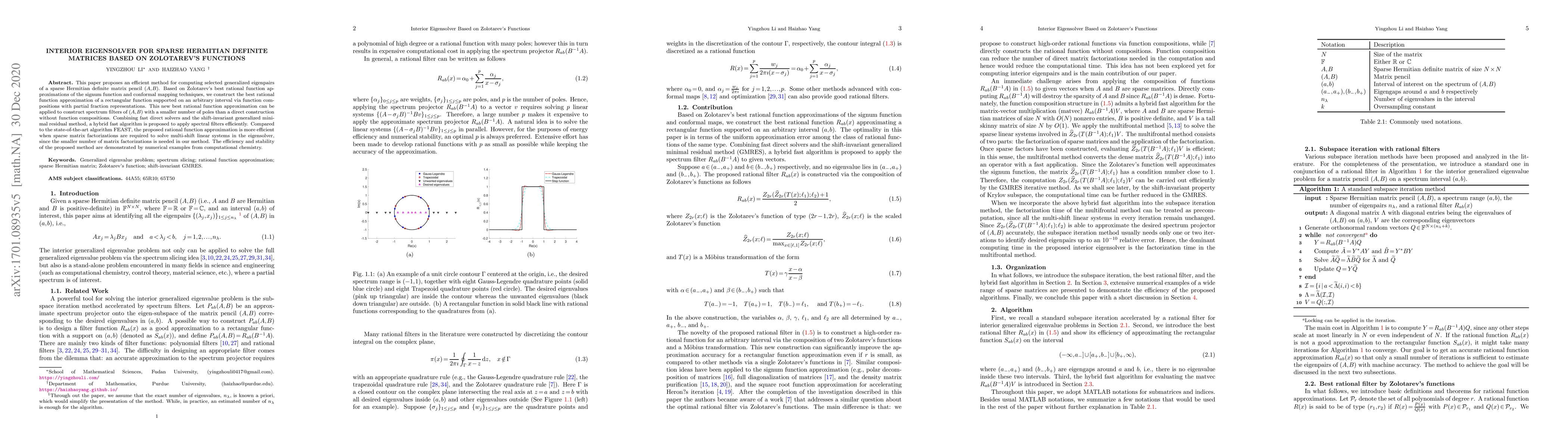 This paper introduces an efficient method for computing selected eigenpairs of sparse Hermitian definite matrices using Zolotarev's rational function approximations and spectral filters. The proposed approach requires fewer matrix factorizations compared to existing algorithms, enhancing efficiency in solving multi-shift linear systems.