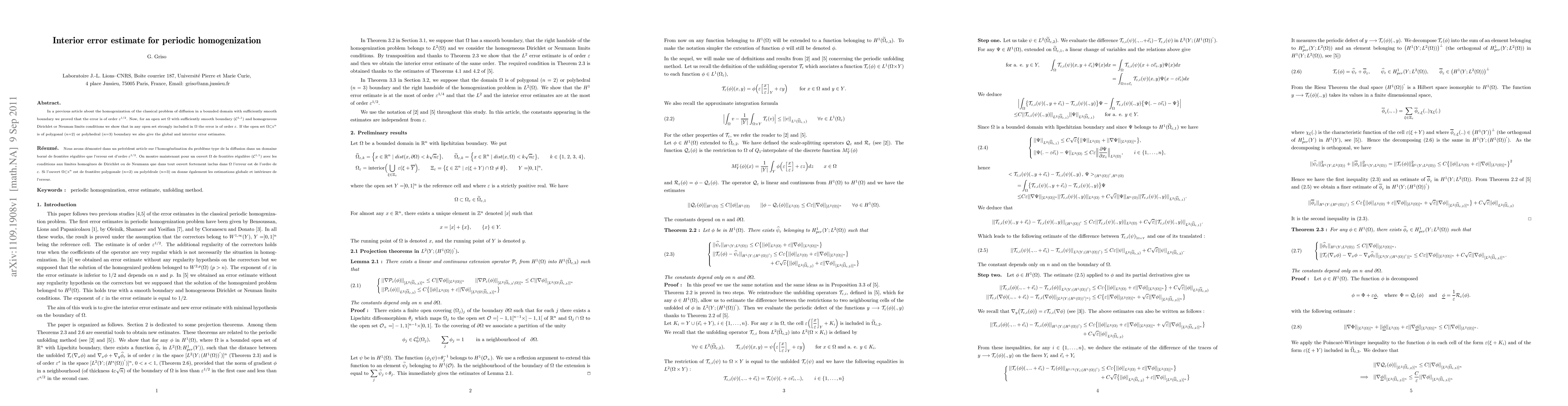 In a previous article about the homogenization of the classical problem of diff usion in a bounded domain with su ciently smooth boundary we proved that the error is of order $\epsilon^{1/2}$. Now, for an open set with su ciently smooth boundary $C^{1,1}$ and homogeneous Dirichlet or Neuman limits conditions we show that in any open set strongly included in the error is of order $\epsilon$. If the open set $\Omega\subset R^n$ is of polygonal (n=2) or polyhedral (n=3) boundary we also give the global and interrior error estimates.