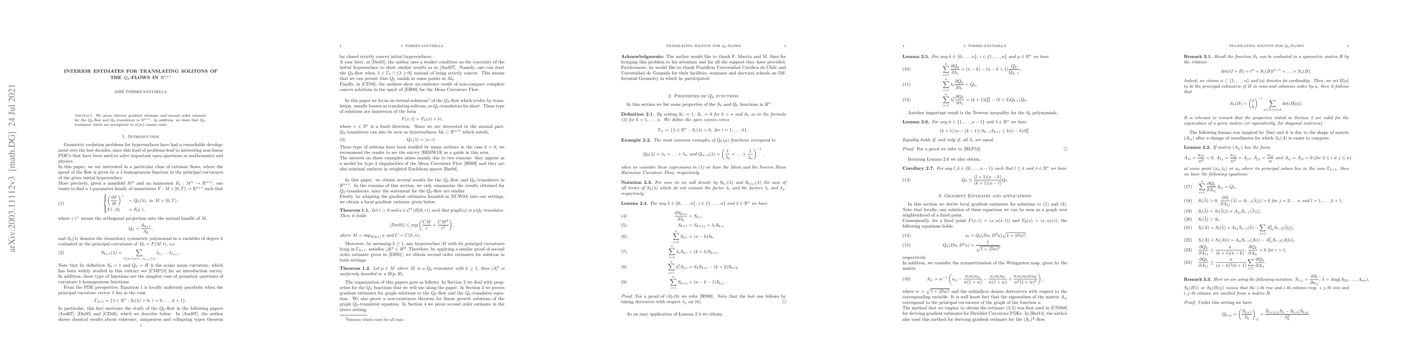 We prove interior gradient estimate and second order estimate for the $Q_k$-flow and $Q_k$-translators in $\mathbb{R}^{n+1}$. In addition, we show that $Q_k$-translator which are asymptotic to $o(|x|)$ cannot exist.