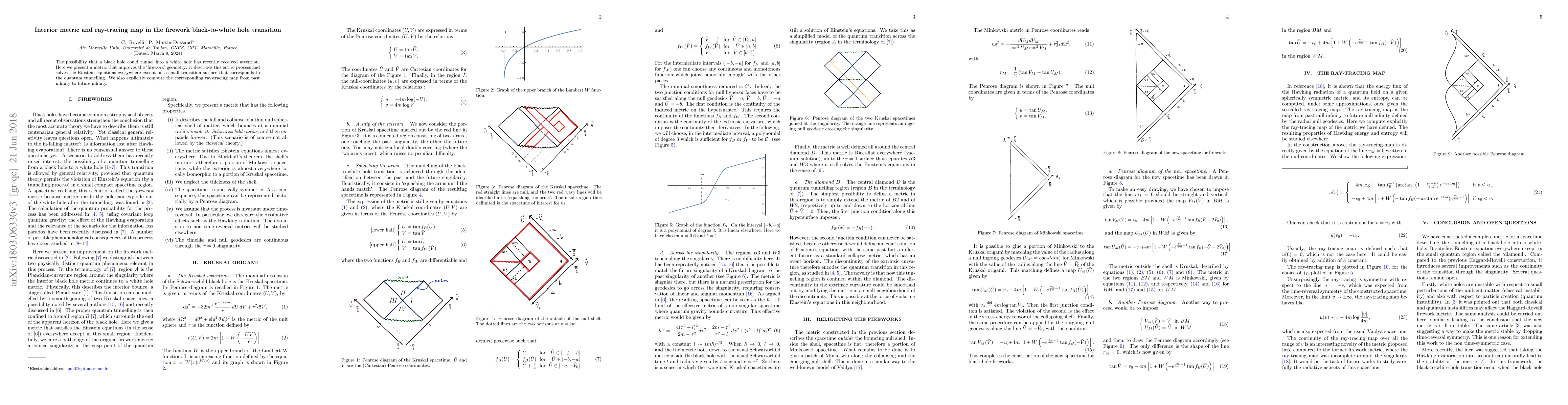 The possibility that a black hole could tunnel into a white hole has recently received attention. Here we present a metric that improves the 'firework' metric: it describes the entire process and solves the Einstein equations everywhere except on a small transition surface that corresponds to the quantum tunnelling. We compute the corresponding ray-tracing map from past infinity to future infinity explicitly.