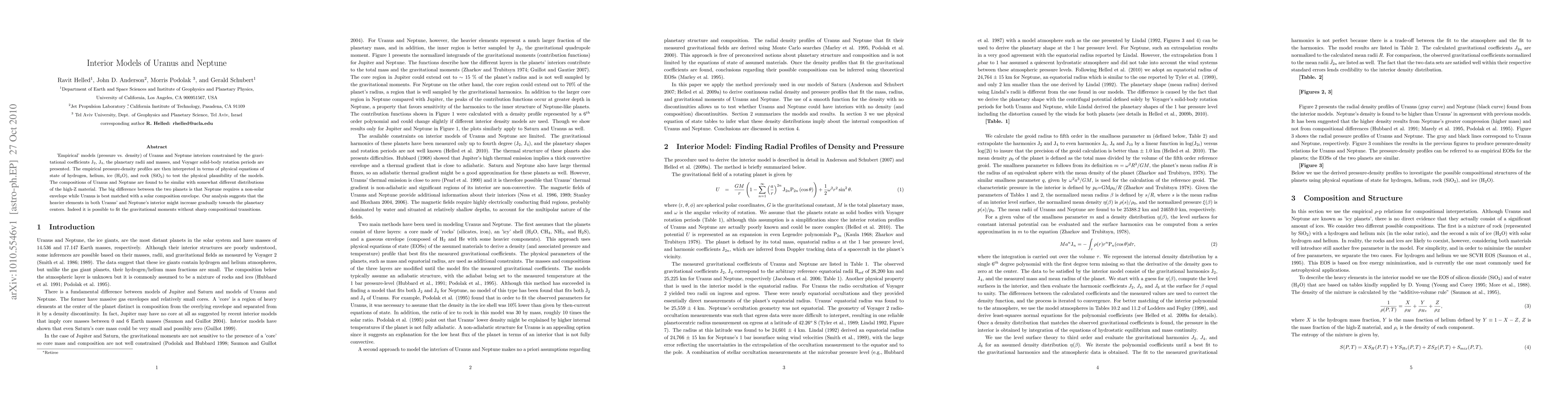 This paper presents empirical models of Uranus and Neptune interiors based on gravitational data and Voyager measurements, revealing similar compositions but different heavy element distributions. Neptune requires a non-solar envelope, while Uranus matches a solar composition, suggesting gradual increases in heavier elements towards the planetary centers.
