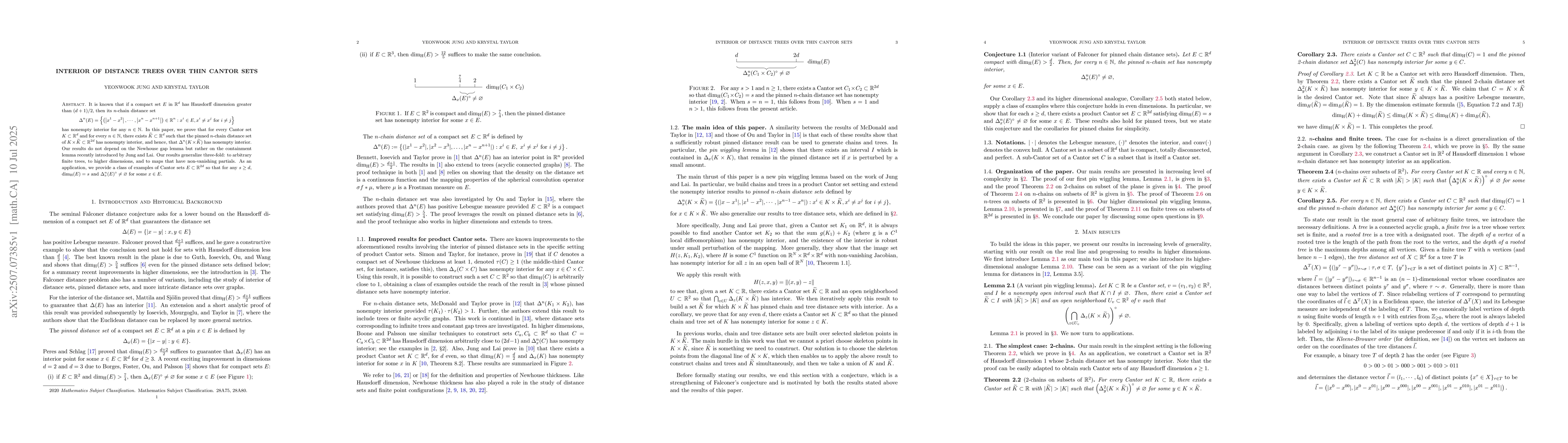 It is known that if a compact set $E$ in $\mathbb{R}^d$ has Hausdorff dimension greater than $(d+1)/2$, then its $n$-chain distance set $$\Delta^n(E) = \left\{\left(\left|x^1-x^2\right|,\cdots, \left|x^{n}- x^{n+1}\right|\right)\in \mathbb{R}^n: x^i \in E, x^i\neq x^j \text{ for } i\neq j \right\}$$ has nonempty interior for any $n\in \mathbb{N}$. In this paper, we prove that for every Cantor set $K\subset \mathbb{R}^d$ and for every $n\in\mathbb{N}$, there exists $\widetilde{K}\subset \mathbb{R}^d$ such that the pinned $n$-chain distance set of $K\times \widetilde{K}\subset \mathbb{R}^{2d}$ has nonempty interior, and hence, that $\Delta^n(K\times \widetilde{K})$ has nonempty interior. Our results do not depend on the Newhouse gap lemma but rather on the containment lemma recently introduced by Jung and Lai. Our results generalize three-fold: to arbitrary finite trees, to higher dimensions, and to maps that have non-vanishing partials. As an application, we provide a class of examples of Cantor sets $E\subset \mathbb{R}^{2d}$ so that for any $s\geq d$, $\dim_{\rm H}(E)= s$ and $\Delta_x^n(E)^\circ{}\neq \varnothing$ for some $x\in E$.