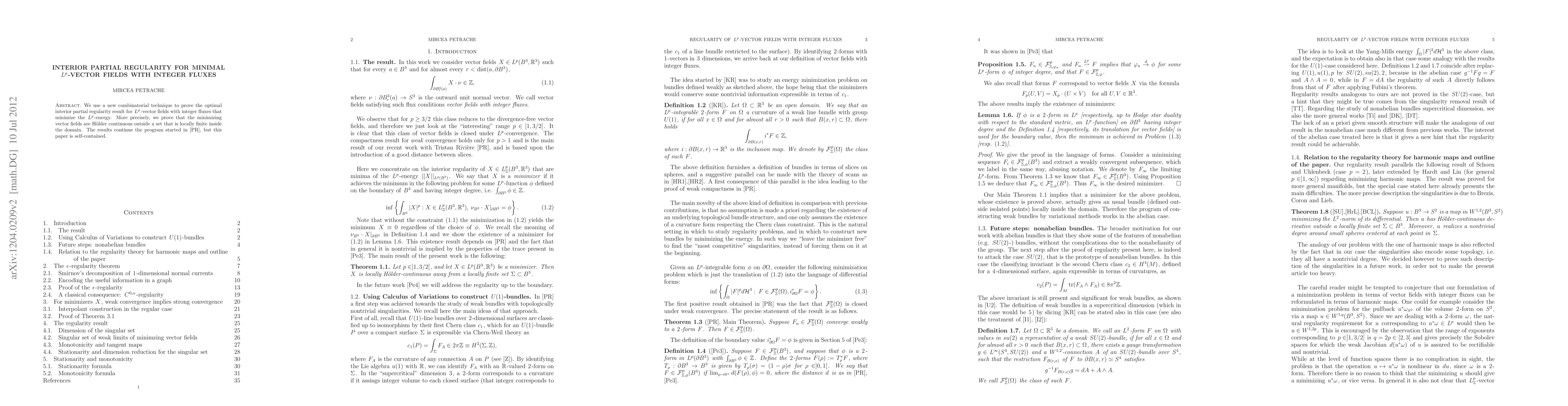 We use a new combinatorial technique to prove the optimal interior partial regularity result for Lp-vectorfields with integer fluxes minimizing the Lp-energy. More precisely, we prove that the minimal vectorfields are H\"older outside a set which is locally finite inside the domain. The results continue the program started in collaboration with Tristan Rivi\`ere, but this paper is self-contained.