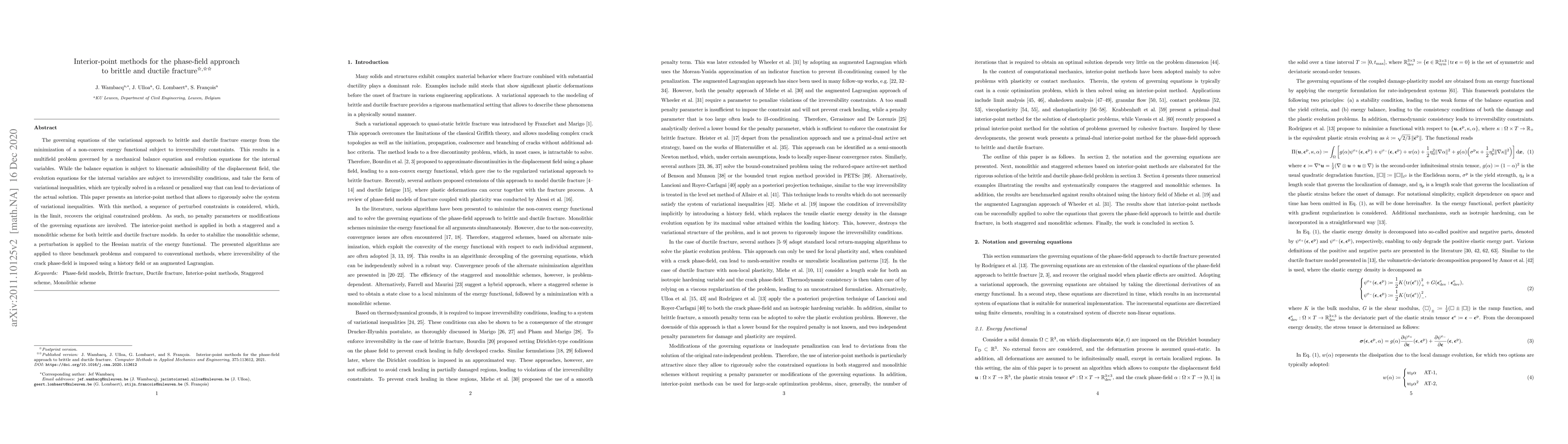 This paper introduces an interior-point method to rigorously solve variational inequalities in the phase-field approach for brittle and ductile fracture, avoiding penalties or modifications of governing equations. The method is applied in both staggered and monolithic schemes, with the latter stabilized by perturbing the Hessian matrix, and is demonstrated on three benchmark problems.