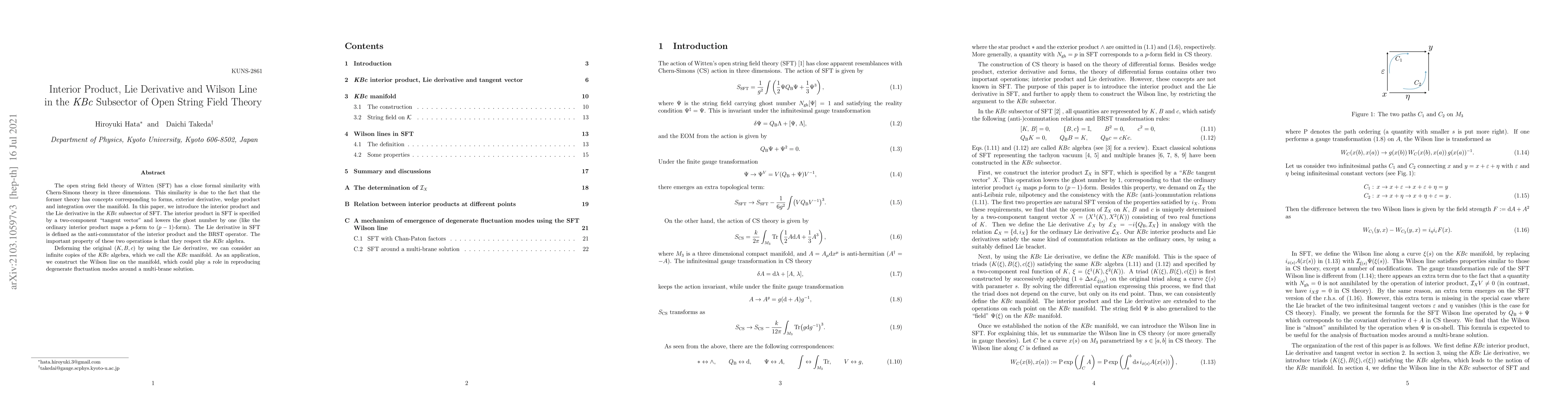The open string field theory of Witten (SFT) has a close formal similarity with Chern-Simons theory in three dimensions. This similarity is due to the fact that the former theory has concepts corresponding to forms, exterior derivative, wedge product and integration over the manifold. In this paper, we introduce the interior product and the Lie derivative in the $KBc$ subsector of SFT. The interior product in SFT is specified by a two-component "tangent vector" and lowers the ghost number by one (like the ordinary interior product maps a $p$-form to $(p-1)$-form). The Lie derivative in SFT is defined as the anti-commutator of the interior product and the BRST operator. The important property of these two operations is that they respect the $KBc$ algebra. Deforming the original $(K,B,c)$ by using the Lie derivative, we can consider an infinite copies of the $KBc$ algebra, which we call the $KBc$ manifold. As an application, we construct the Wilson line on the manifold, which could play a role in reproducing degenerate fluctuation modes around a multi-brane solution.