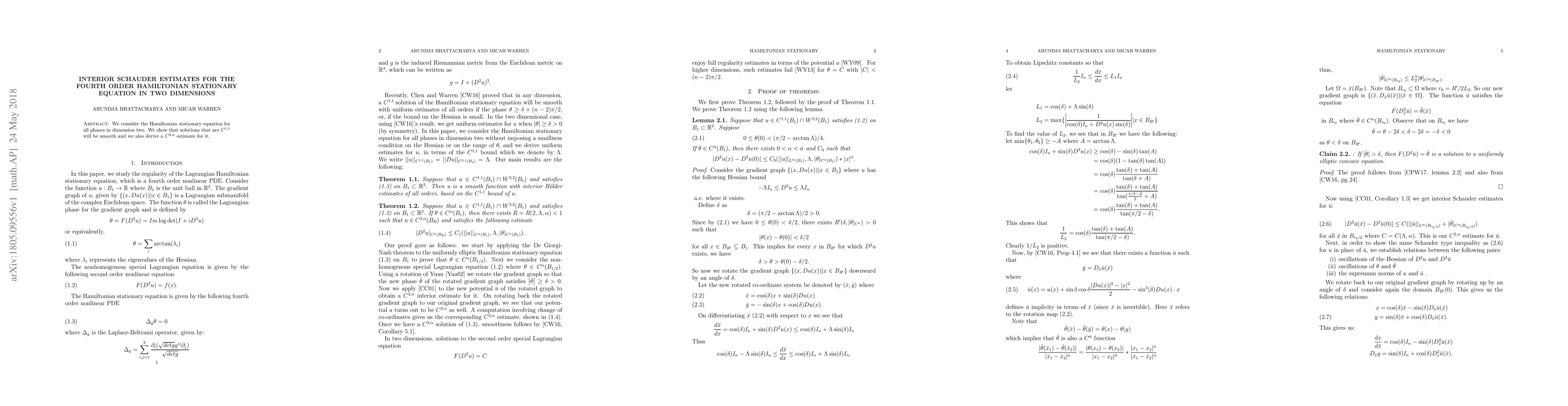 We consider the Hamiltonian stationary equation for all phases in dimension two. We show that solutions that are $C^{1,1}$ will be smooth and we also derive a $C^{2,\alpha}$ estimate for it.