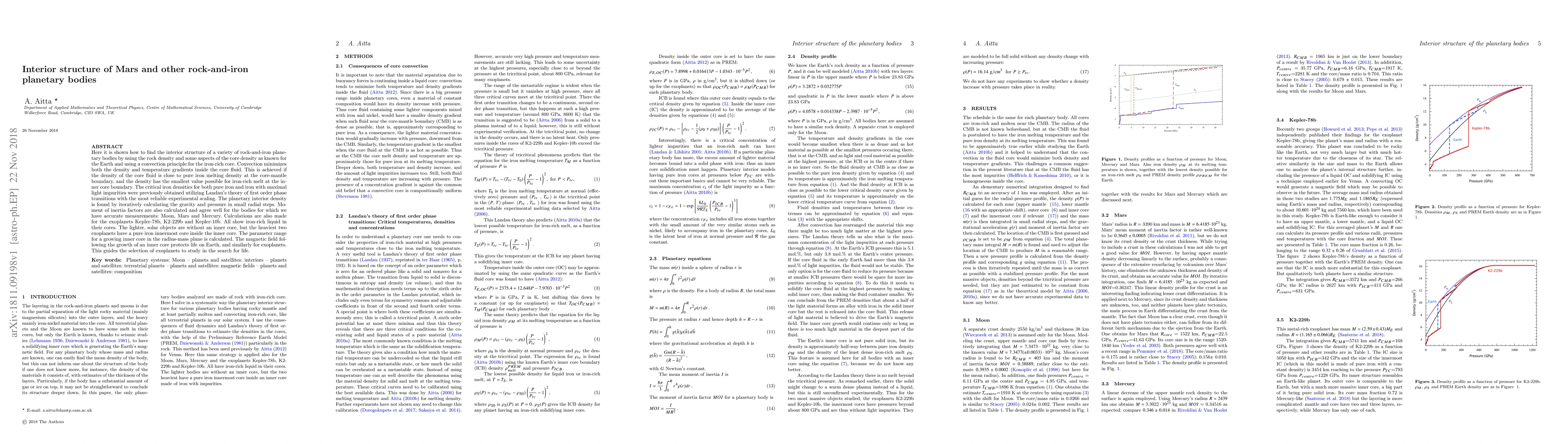 This paper presents a method to determine the interior structure of rock-and-iron planetary bodies, including Mars, by using rock density and core density principles derived from Earth, and applying a convection principle for iron-rich cores. It finds that heavier exoplanets possess a pure iron innermost core, which could influence their potential to support life.
