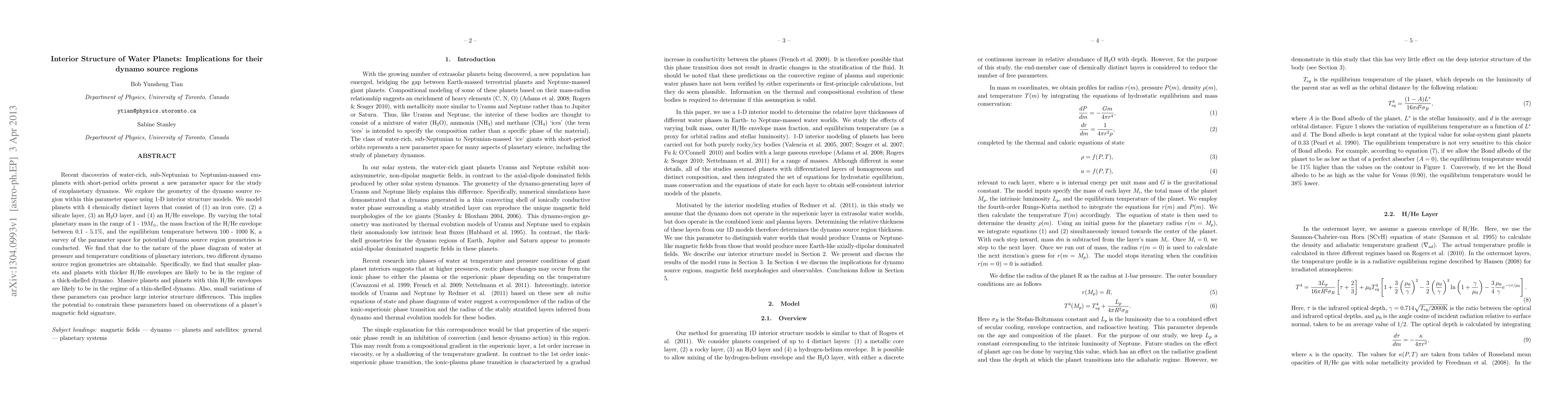 Recent discoveries of water-rich, sub-Neptunian to Neptunian-massed exoplanets with short-period orbits present a new parameter space for the study of exoplanetary dynamos. We explore the geometry of the dynamo source region within this parameter space using 1-D interior structure models. We model planets with 4 chemically distinct layers that consist of (1) an iron core, (2) a silicate layer, (3) an H2O layer, and (4) an H/He envelope. By varying the total planetary mass in the range of 1 - 19 Earth masses, the mass fraction of the H/He envelope between 0.1 - 5.1%, and the equilibrium temperature between 100 - 1000 K, a survey of the parameter space for potential dynamo source region geometries is conducted. We find that due to the nature of the phase diagram of water at pressure and temperature conditions of planetary interiors, two different dynamo source region geometries are obtainable. Specifically, we find that smaller planets and planets with thicker H/He envelopes are likely to be in the regime of a thick-shelled dynamo. Massive planets and planets with thin H/He envelopes are likely to be in the regime of a thin-shelled dynamo. Also, small variations of these parameters can produce large interior structure differences. This implies the potential to constrain these parameters based on observations of a planet's magnetic field signature.