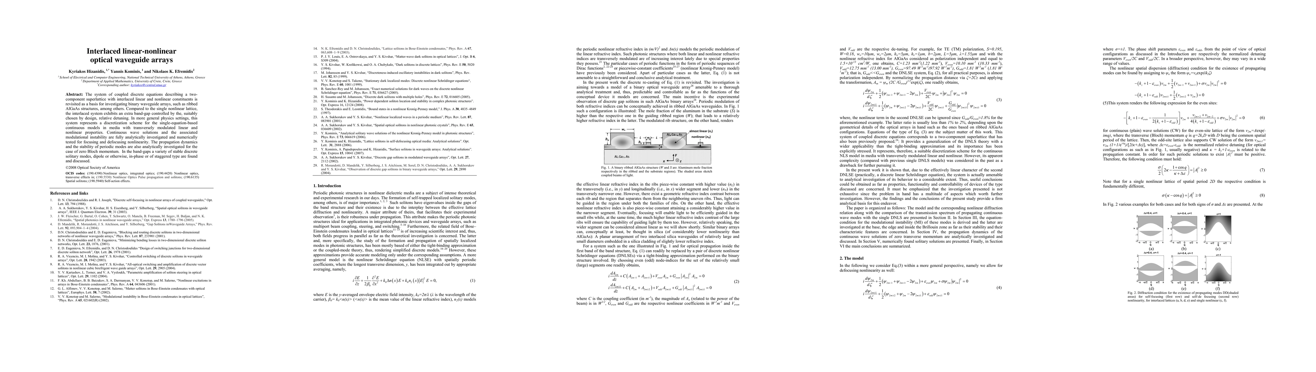 The system of coupled discrete equations describing a two-component superlattice with interlaced linear and nonlinear constituents is revisited as a basis for investigating binary waveguide arrays, such as ribbed AlGaAs structures, among others. Compared to the single nonlinear lattice, the interlaced system exhibits an extra band-gap controlled by the, suitably chosen by design, relative detuning. In more general physics settings, this system represents a discretization scheme for the single-equation-based continuous models in media with transversely modulated linear and nonlinear properties. Continuous wave solutions and the associated modulational instability are fully analytically investigated and numerically tested for focusing and defocusing nonlinearity. The propagation dynamics and the stability of periodic modes are also analytically investigated for the case of zero Bloch momentum. In the band-gaps a variety of stable discrete solitary modes, dipole or otherwise, in-phase or of staggered type are found and discussed.