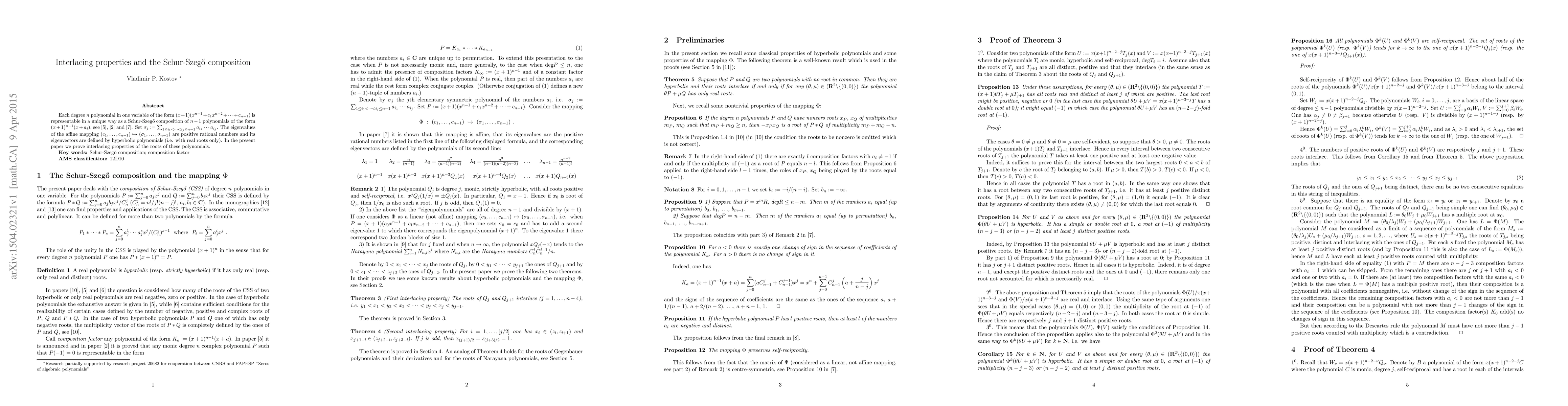 Researchers prove interlacing properties of roots for polynomials derived from Schur-Szegø compositions, with implications for unique polynomial representations and affine mapping eigenvalues.