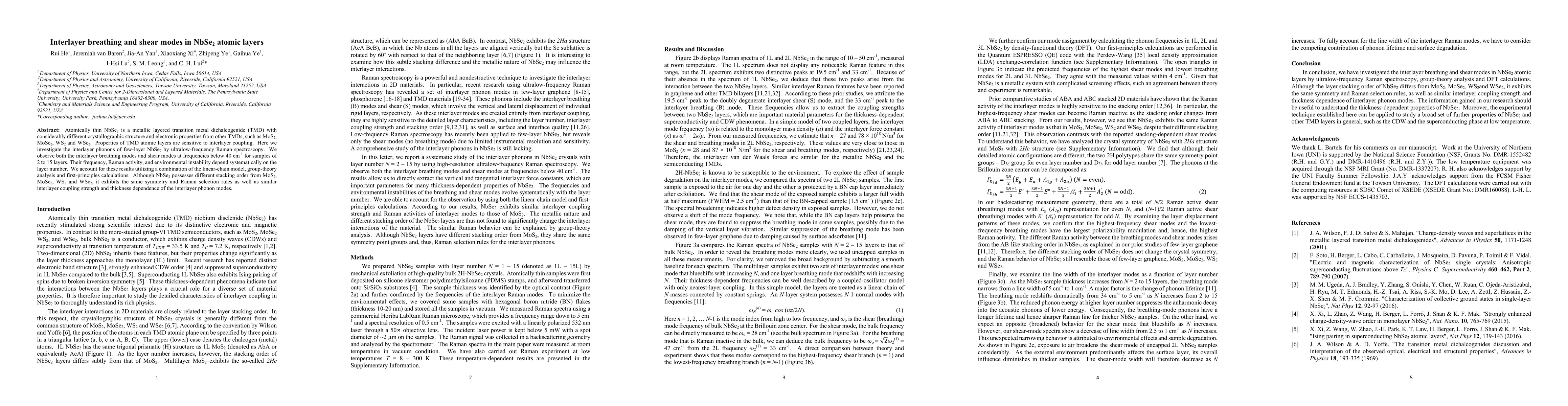 This study investigates the interlayer phonons in few-layer NbSe2 using ultralow-frequency Raman spectroscopy, revealing interlayer breathing and shear modes below 40 cm-1. The findings show systematic dependence on layer number, analyzed through a combination of linear-chain models, group-theory analysis, and first-principles calculations.