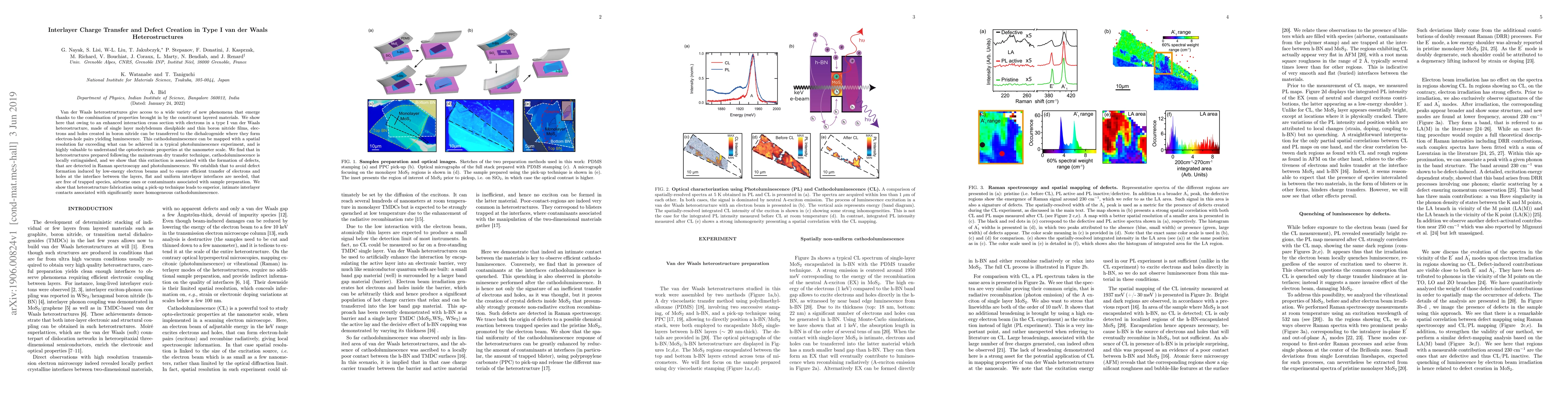 Van der Waals heterostructures give access to a wide variety of new phenomena that emerge thanks to the combination of properties brought in by the constituent layered materials. We show here that owing to an enhanced interaction cross section with electrons in a type I van der Waals heterostructure, made of single layer molybdenum disulphide and thin boron nitride films, electrons and holes created in boron nitride can be transferred to the dichalcogenide where they form electron-hole pairs yielding luminescence. This cathodoluminescence can be mapped with a spatial resolution far exceeding what can be achieved in a typical photoluminescence experiment, and is highly valuable to understand the optoelectronic properties at the nanometer scale. We find that in heterostructures prepared following the mainstream dry transfer technique, cathodoluminescence is locally extinguished, and we show that this extinction is associated with the formation of defects, that are detected in Raman spectroscopy and photoluminescence. We establish that to avoid defect formation induced by low-energy electron beams and to ensure efficient transfer of electrons and holes at the interface between the layers, flat and uniform interlayer interfaces are needed, that are free of trapped species, airborne ones or contaminants associated with sample preparation. We show that heterostructure fabrication using a pick-up technique leads to superior, intimate interlayer contacts associated with significantly more homogeneous cathodoluminescence.