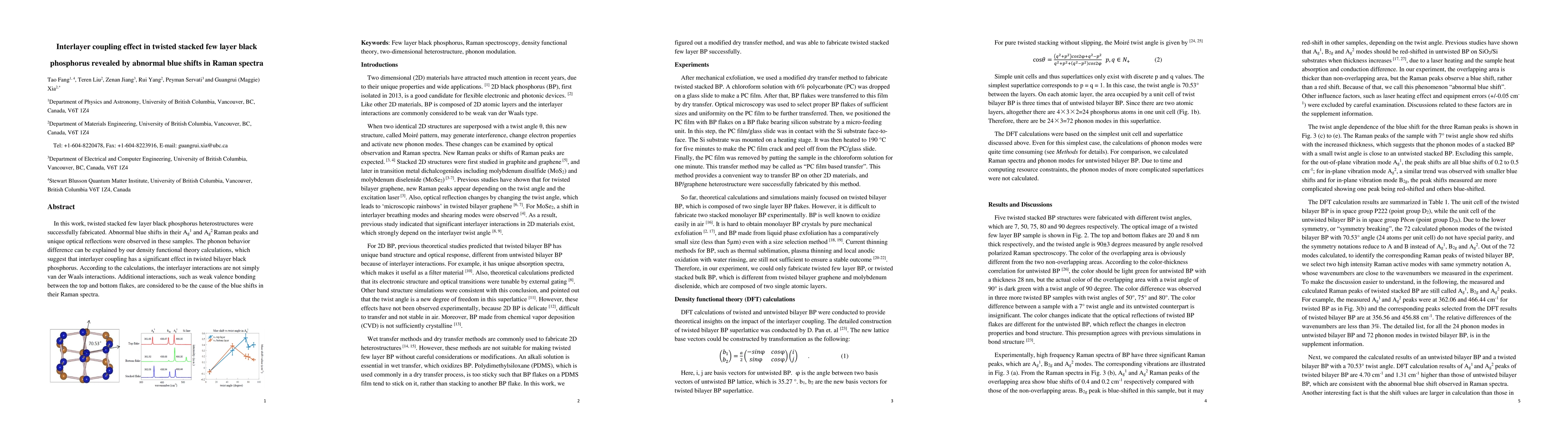 This study reveals significant interlayer coupling effects in twisted stacked few-layer black phosphorus through abnormal blue shifts in Raman spectra, indicating interactions beyond van der Waals forces, such as weak valence bonding, as shown by density functional theory calculations.