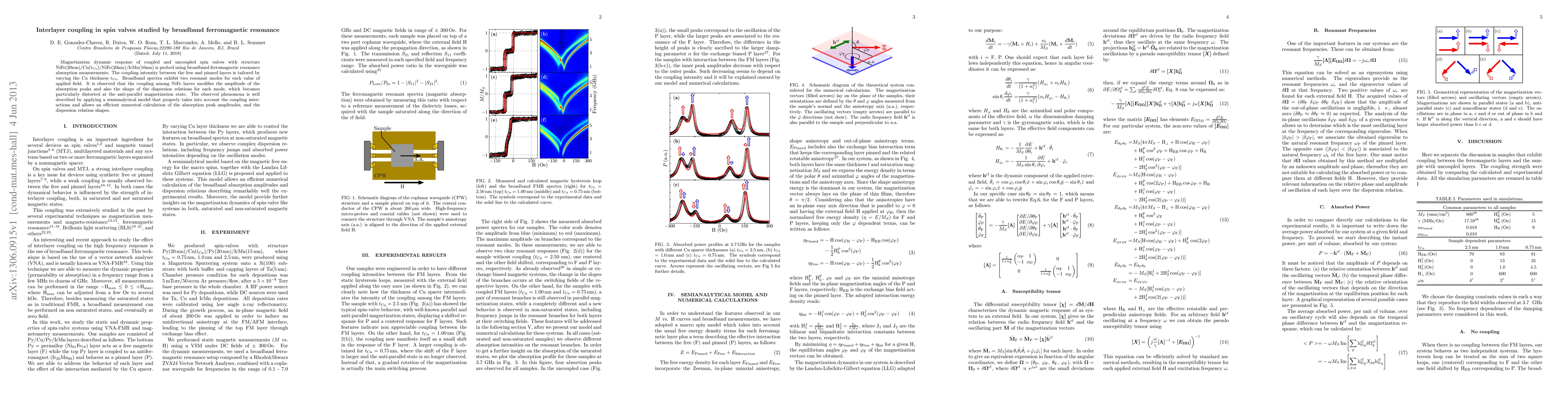 This research utilizes broadband ferromagnetic resonance to study the magnetization dynamics in spin valves with tunable interlayer coupling. By adjusting Cu thickness, coupling intensity is modified, altering the amplitude and dispersion of resonant modes. A numerical model is proposed to explain these observed phenomena.