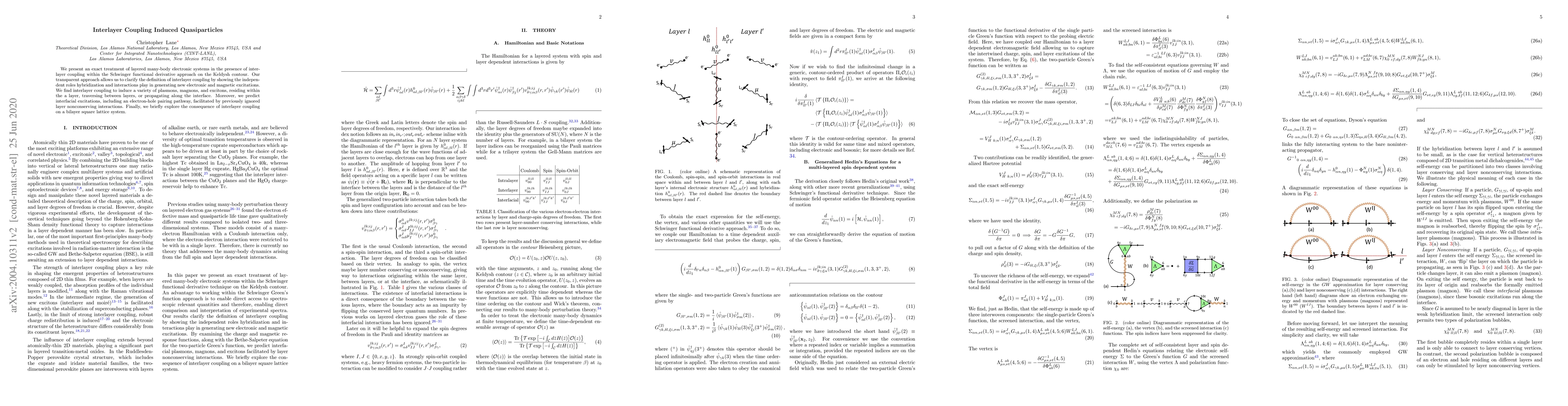 We present an exact treatment of layered many-body electronic systems in the presence of interlayer coupling within the Schwinger functional derivative approach on the Keldysh contour. Our transparent approach allows us to clarify the definition of interlayer coupling by showing the independent roles hybridization and interactions play in generating new electronic and magnetic excitations. We find interlayer coupling to induce a variety of plasmons, magnons, and excitons, residing within the a layer, traversing between layers, or propagating along the interface. Moreover, we predict interfacial excitations, including an electron-hole pairing pathway, facilitated by previously ignored layer nonconserving interactions. Finally, we briefly explore the consequence of interlayer coupling on a bilayer square lattice system.