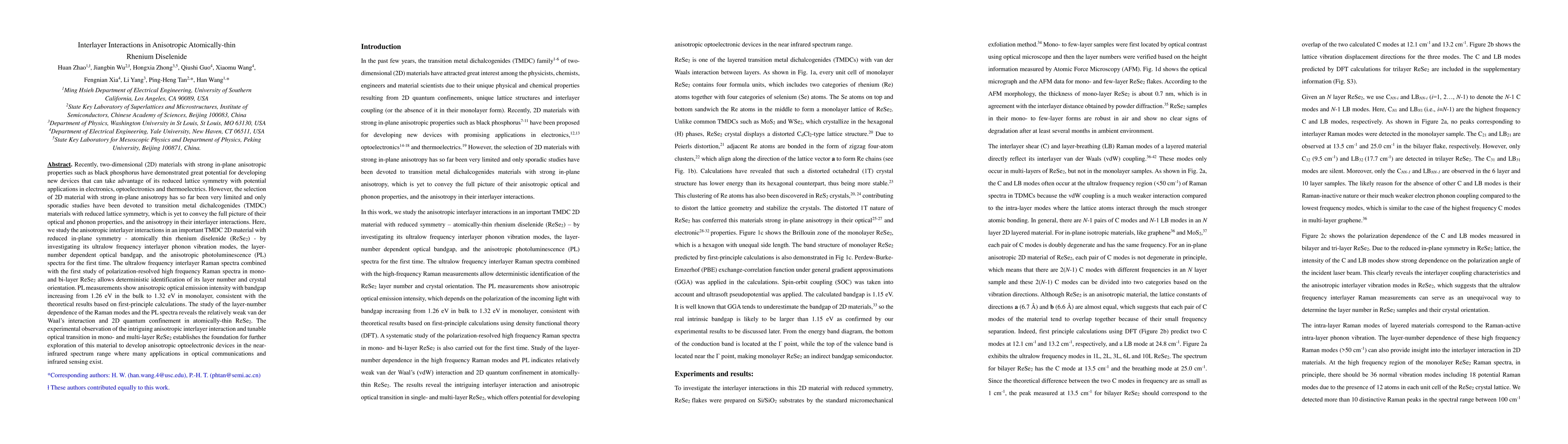 Researchers studied anisotropic interlayer interactions in atomically thin rhenium diselenide (ReSe2), revealing weak van der Waals interaction and 2D quantum confinement, with implications for device development in electronics, optoelectronics, and thermoelectrics.