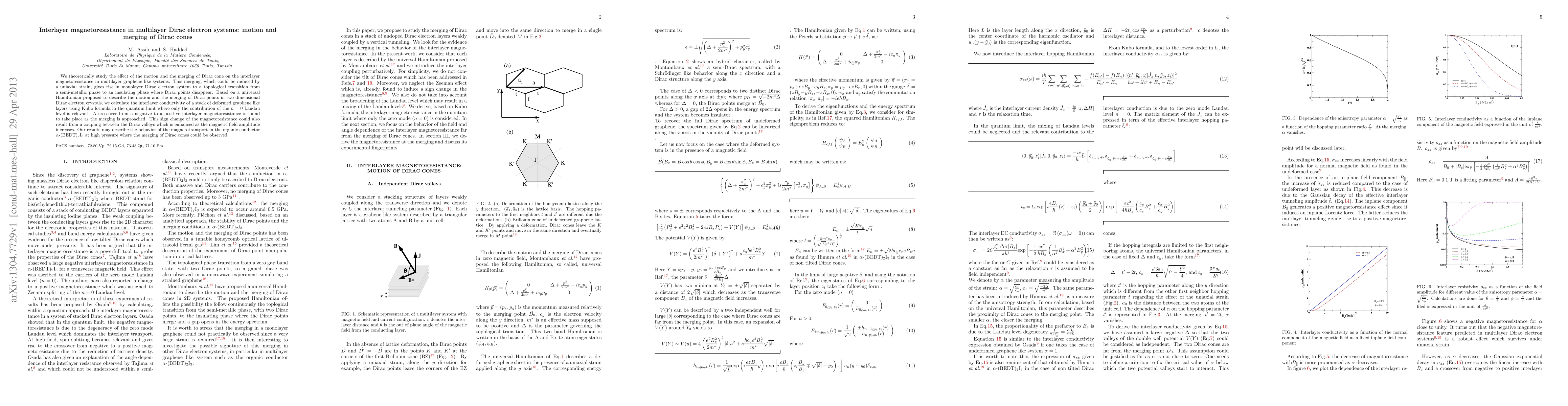 This paper investigates the interlayer magnetoresistance in multilayer graphene-like systems, focusing on the effects of Dirac cone motion and merging induced by uniaxial strain. The study reveals a crossover from negative to positive magnetoresistance as Dirac cones merge, potentially explaining the magnetotransport behavior in high-pressure organic conductors like $\alpha$-(BEDT)$_2$I$_3$.