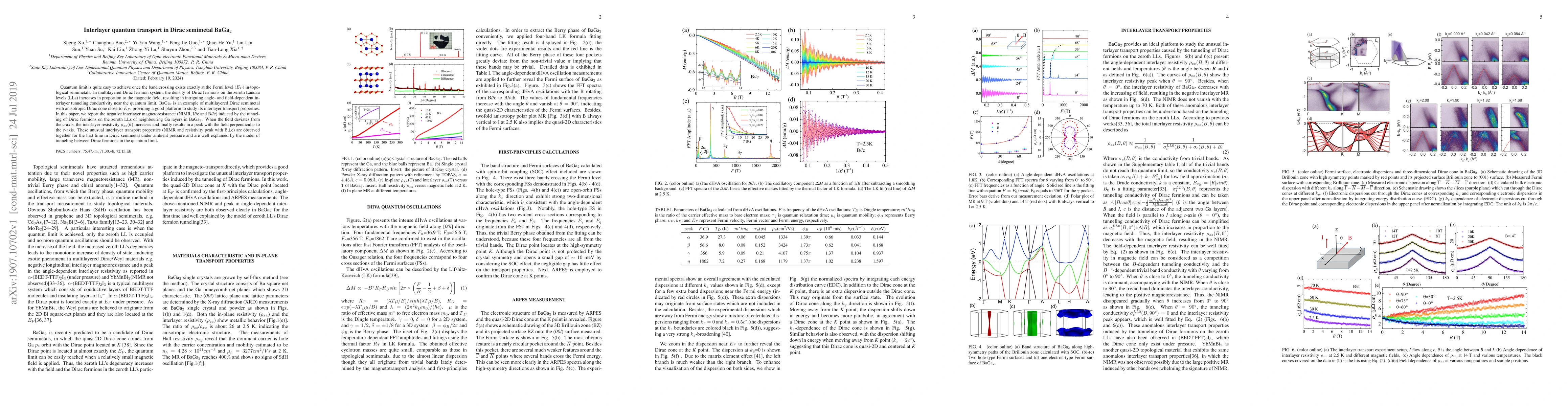 This paper investigates the interlayer quantum transport in the Dirac semimetal BaGa$_2$, reporting negative interlayer magnetoresistance (NIMR) and a resistivity peak when the magnetic field is perpendicular to the c-axis, attributed to tunneling of Dirac fermions on the zeroth Landau levels. These phenomena are first observed together in a Dirac semimetal under ambient pressure.