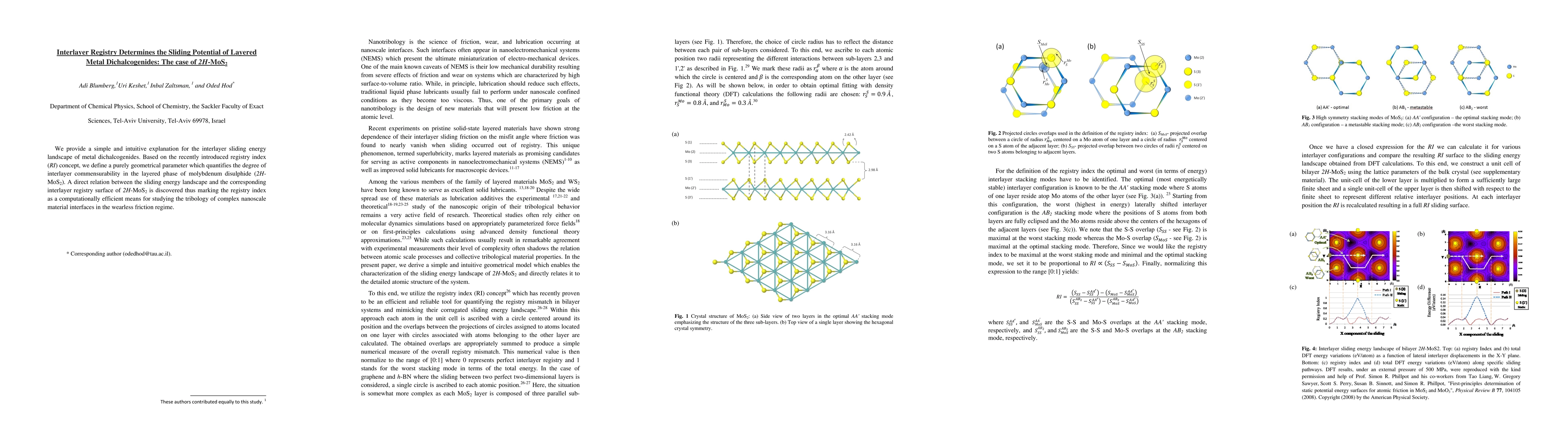 This paper introduces the registry index (RI) to quantify interlayer sliding potential in 2H-MoS2, revealing a direct correlation between the RI and the sliding energy landscape, offering a computationally efficient method for studying nanoscale frictionless interfaces.