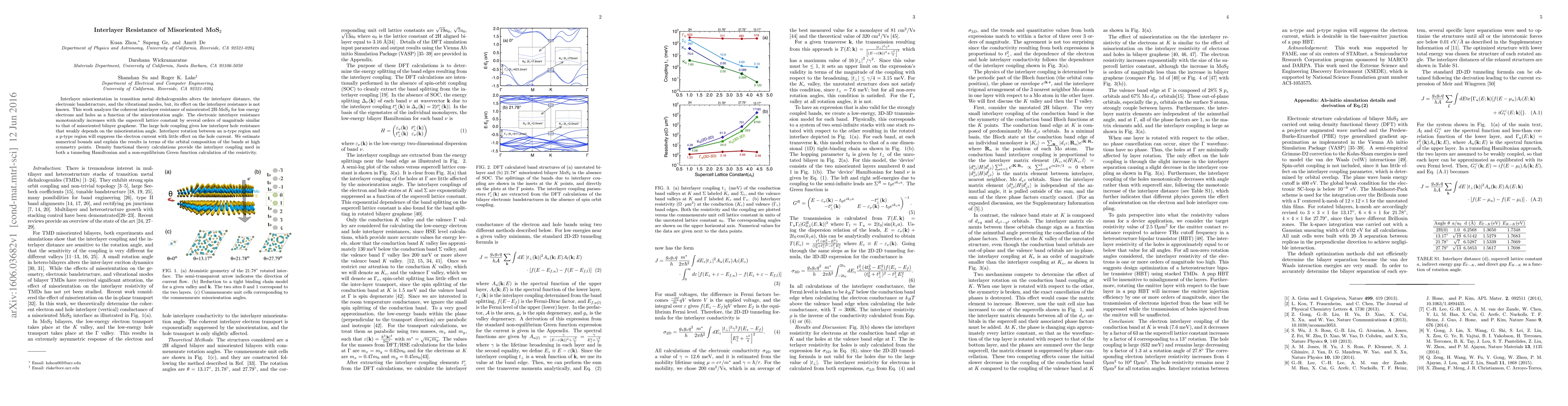 Interlayer misorientation in transition metal dichalcogenides alters the interlayer distance, the electronic band structure, and the vibrational modes, but, its effect on the interlayer resistance is not known. This work analyzes the coherent interlayer resistance of misoriented 2H-MoS2 for low energy electrons and holes as a function of the misorientation angle. The electronic interlayer resistance monotonically increases with the supercell lattice constant by several orders of magnitude similar to that of misoriented bilayer graphene. The large hole coupling gives low interlayer hole resistance that weakly depends on the misorientation angle. Interlayer rotation between an n-type region and a p-type region will suppress the electron current with little effect on the hole current. We estimate numerical bounds and explain the results in terms of the orbital composition of the bands at high symmetry points. Density functional theory calculations provide the interlayer coupling used in both a tunneling Hamiltonian and a non-equilibrium Green function calculation of the resistivity.