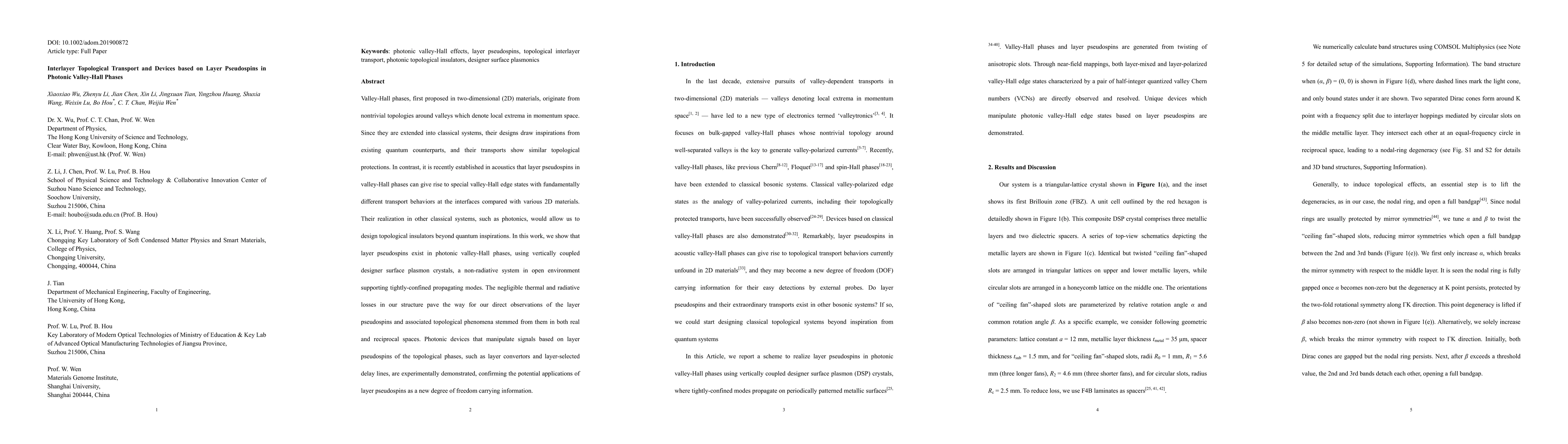 This paper demonstrates the existence of layer pseudospins in photonic valley-Hall phases using vertically coupled designer surface plasmon crystals, enabling topological transport phenomena. Photonic devices exploiting layer pseudospins, such as layer convertors and delay lines, are experimentally validated, showcasing their potential for information manipulation beyond quantum systems.
