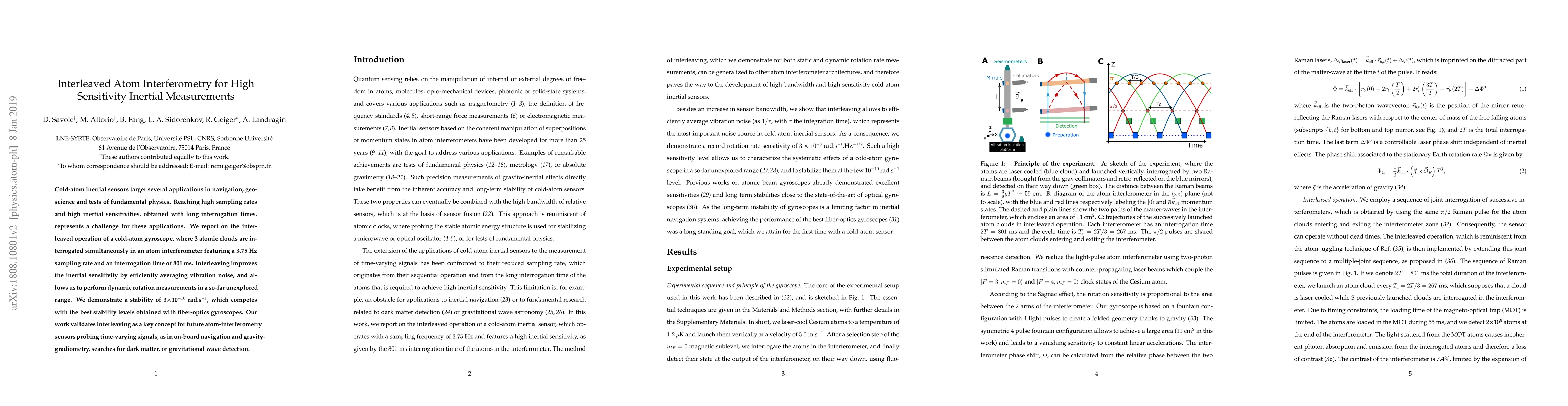 Cold-atom inertial sensors target several applications in navigation, geoscience and tests of fundamental physics. Reaching high sampling rates and high inertial sensitivities, obtained with long interrogation times, represents a challenge for these applications. We report on the interleaved operation of a cold-atom gyroscope, where 3 atomic clouds are interrogated simultaneously in an atom interferometer featuring a 3.75 Hz sampling rate and an interrogation time of 801 ms. Interleaving improves the inertial sensitivity by efficiently averaging vibration noise, and allows us to perform dynamic rotation measurements in a so-far unexplored range. We demonstrate a stability of $3\times 10^{-10}$ rad.s$^{-1}$, which competes with the best stability levels obtained with fiber-optics gyroscopes. Our work validates interleaving as a key concept for future atom-interferometry sensors probing time-varying signals, as in on-board navigation and gravity-gradiometry, searches for dark matter, or gravitational wave detection.