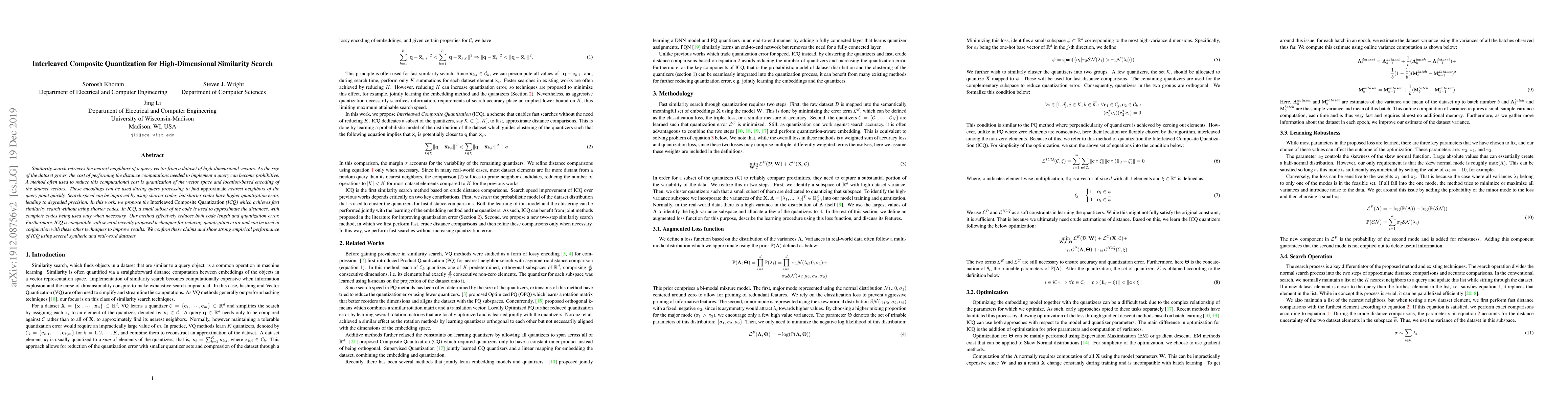 Similarity search retrieves the nearest neighbors of a query vector from a dataset of high-dimensional vectors. As the size of the dataset grows, the cost of performing the distance computations needed to implement a query can become prohibitive. A method often used to reduce this computational cost is quantization of the vector space and location-based encoding of the dataset vectors. These encodings can be used during query processing to find approximate nearest neighbors of the query point quickly. Search speed can be improved by using shorter codes, but shorter codes have higher quantization error, leading to degraded precision. In this work, we propose the Interleaved Composite Quantization (ICQ) which achieves fast similarity search without using shorter codes. In ICQ, a small subset of the code is used to approximate the distances, with complete codes being used only when necessary. Our method effectively reduces both code length and quantization error. Furthermore, ICQ is compatible with several recently proposed techniques for reducing quantization error and can be used in conjunction with these other techniques to improve results. We confirm these claims and show strong empirical performance of ICQ using several synthetic and real-word datasets.