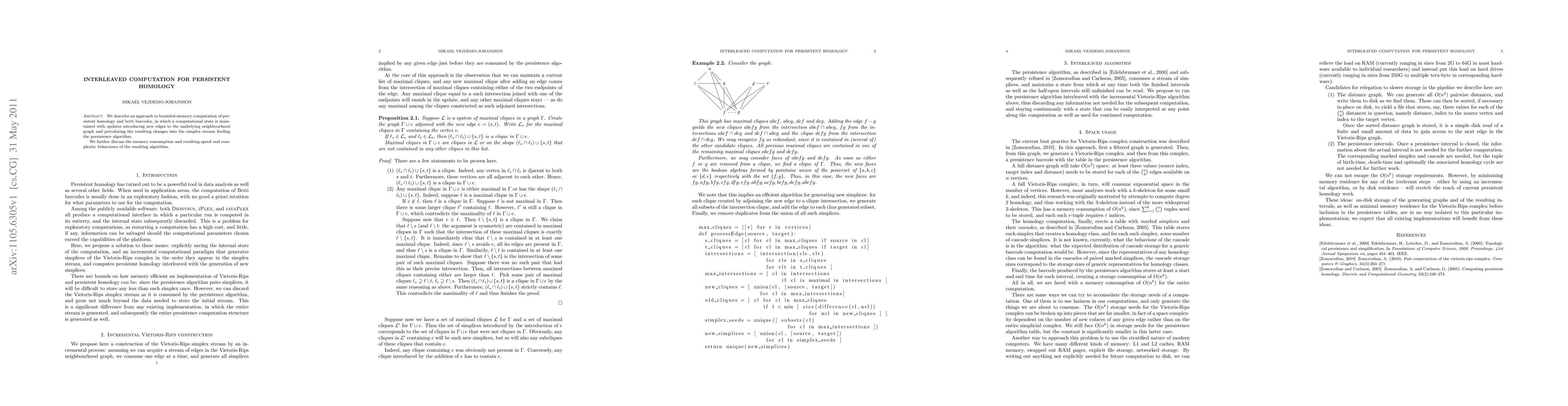 This paper introduces an interleaved computation method for persistent homology and Betti barcodes, maintaining a bounded-memory state by updating and propagating changes in a neighborhood graph. The study analyzes the memory usage and the algorithm's speed and complexity.
