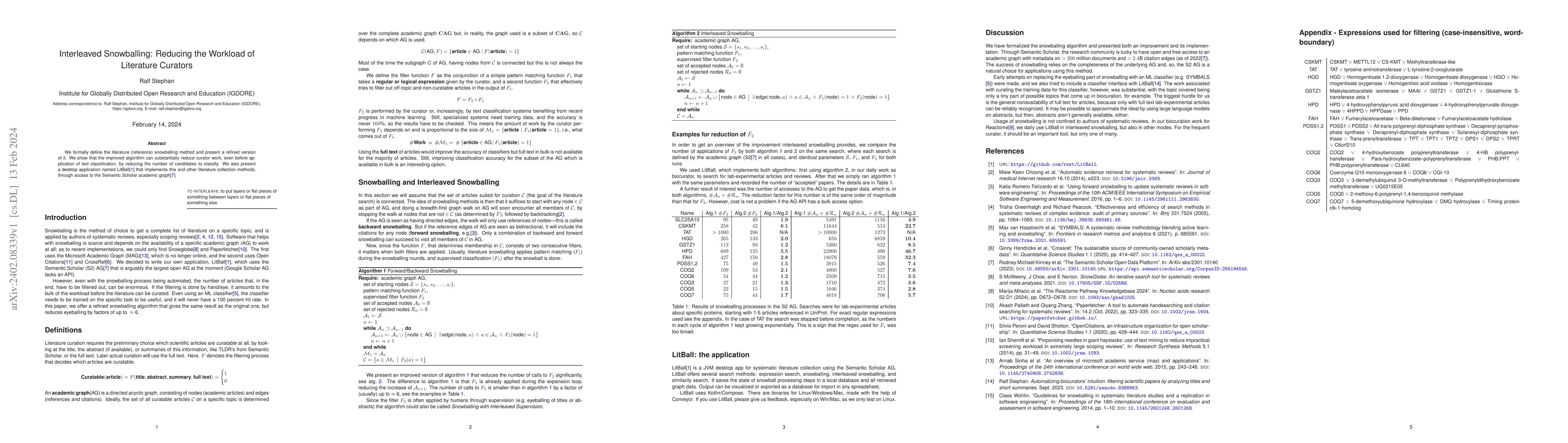 This paper introduces a refined version of the literature snowballing method called interleaved snowballing to minimize the workload of curators by reducing the number of references to be classified. The proposed algorithm is implemented in a desktop application named LitBall, which leverages the Semantic Scholar academic graph.