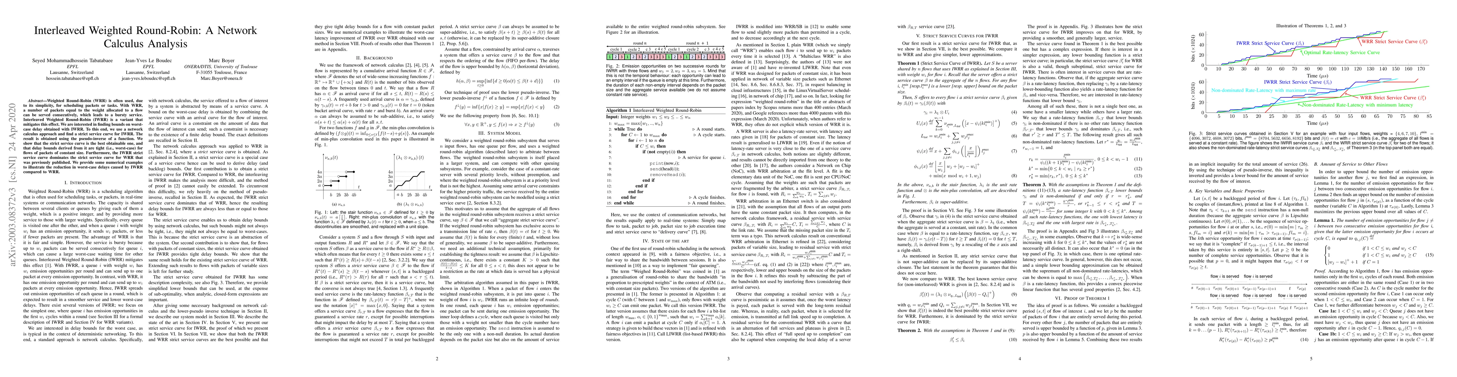 This paper proposes Interleaved Weighted Round-Robin (IWRR) to mitigate bursty service in Weighted Round-Robin (WRR) scheduling. Using network calculus, it derives a strict service curve for IWRR, demonstrating tighter worst-case delay bounds compared to WRR, and providing numerical examples to illustrate the reduction in delays.