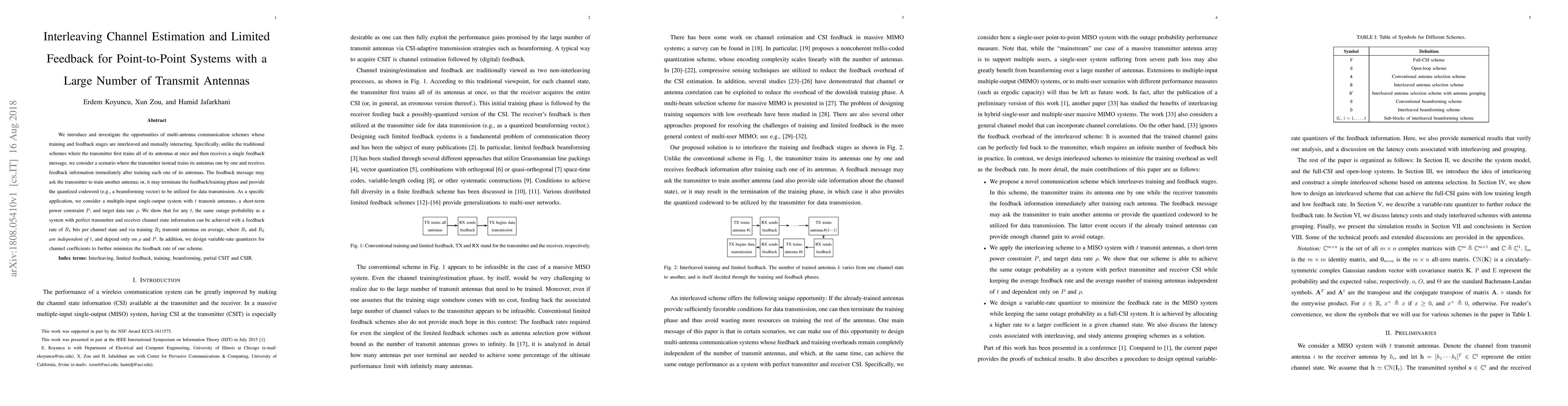 We introduce and investigate the opportunities of multi-antenna communication schemes whose training and feedback stages are interleaved and mutually interacting. Specifically, unlike the traditional schemes where the transmitter first trains all of its antennas at once and then receives a single feedback message, we consider a scenario where the transmitter instead trains its antennas one by one and receives feedback information immediately after training each one of its antennas. The feedback message may ask the transmitter to train another antenna; or, it may terminate the feedback/training phase and provide the quantized codeword (e.g., a beamforming vector) to be utilized for data transmission. As a specific application, we consider a multiple-input single-output system with $t$ transmit antennas, a short-term power constraint $P$, and target data rate $\rho$. We show that for any $t$, the same outage probability as a system with perfect transmitter and receiver channel state information can be achieved with a feedback rate of $R_1$ bits per channel state and via training $R_2$ transmit antennas on average, where $R_1$ and $R_2$ are independent of $t$, and depend only on $\rho$ and $P$. In addition, we design variable-rate quantizers for channel coefficients to further minimize the feedback rate of our scheme.