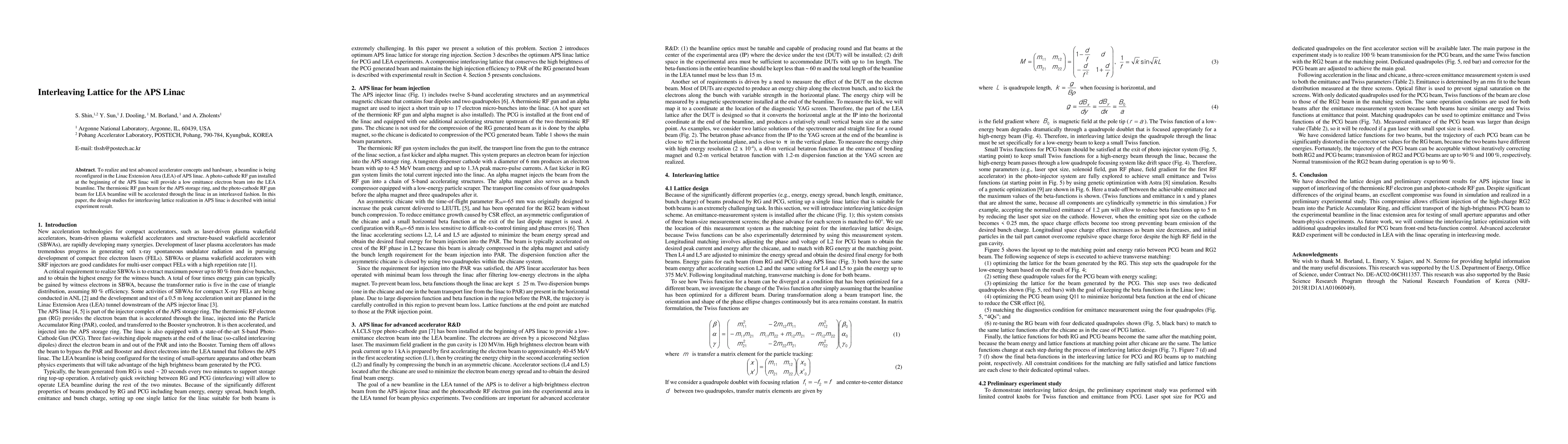 Researchers designed an interleaved lattice for the APS Linac to test advanced accelerator concepts, using a photo-cathode RF gun to provide low-emittance electron beams in both the Linac Extension Area (LEA) beamline and the APS storage ring.