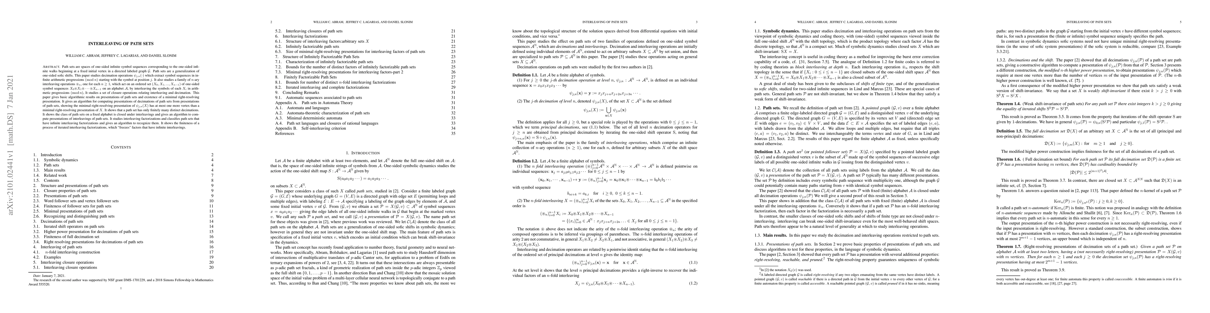 This paper studies path sets, a generalization of one-sided sofic shifts, and their properties under decimation and interleaving operations, showing that they have finite distinct decimations and can be closed under certain interleaving operations.