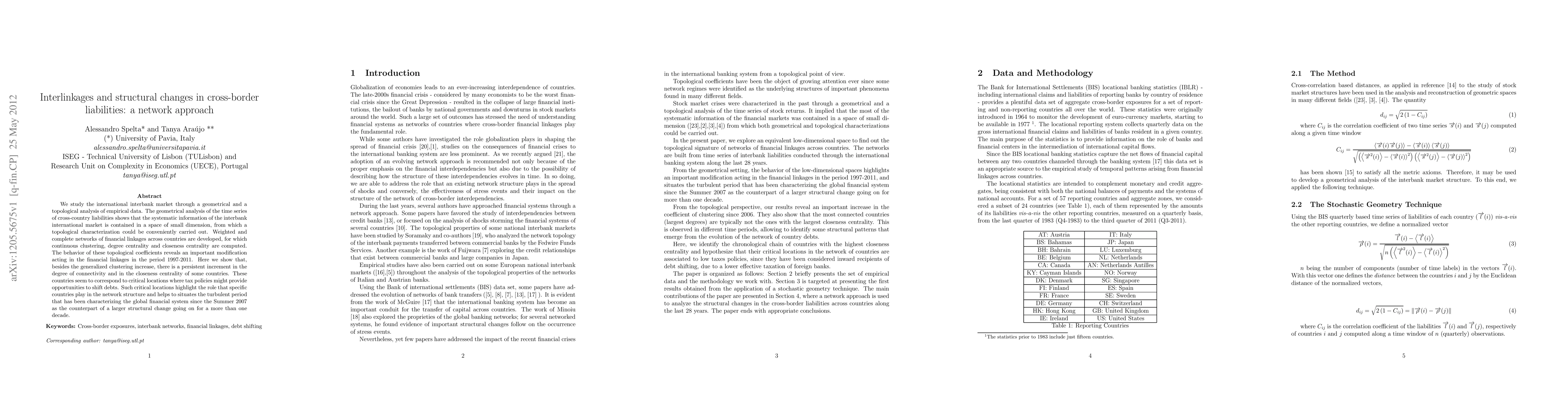 We study the international interbank market through a geometrical and a topological analysis of empirical data. The geometrical analysis of the time series of cross-country liabilities shows that the systematic information of the interbank international market is contained in a space of small dimension, from which a topological characterization could be conveniently carried out. Weighted and complete networks of financial linkages across countries are developed, for which continuous clustering, degree centrality and closeness centrality are computed. The behavior of these topological coefficients reveals an important modification acting in the financial linkages in the period 1997-2011. Here we show that, besides the generalized clustering increase, there is a persistent increment in the degree of connectivity and in the closeness centrality of some countries. These countries seem to correspond to critical locations where tax policies might provide opportunities to shift debts. Such critical locations highlight the role that specific countries play in the network structure and helps to situates the turbulent period that has been characterizing the global financial system since the Summer 2007 as the counterpart of a larger structural change going on for a more than one decade.