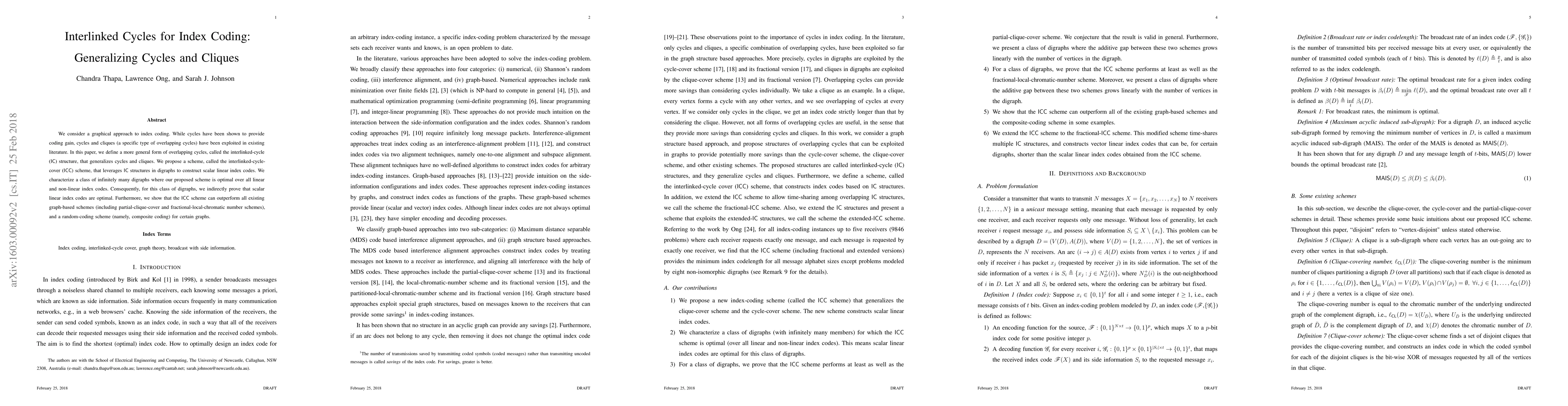We consider a graphical approach to index coding. While cycles have been shown to provide coding gain, only disjoint cycles and cliques (a specific type of overlapping cycles) have been exploited in existing literature. In this paper, we define a more general form of overlapping cycles, called the interlinked-cycle (IC) structure, that generalizes cycles and cliques. We propose a scheme, called the interlinked-cycle-cover (ICC) scheme, that leverages IC structures in digraphs to construct scalar linear index codes. We characterize a class of infinitely many digraphs where our proposed scheme is optimal over all linear and non-linear index codes. Consequently, for this class of digraphs, we indirectly prove that scalar linear index codes are optimal. Furthermore, we show that the ICC scheme can outperform all existing graph-based schemes (including partial-clique-cover and fractional-local-chromatic number schemes), and a random-coding scheme (namely, composite coding) for certain graphs.