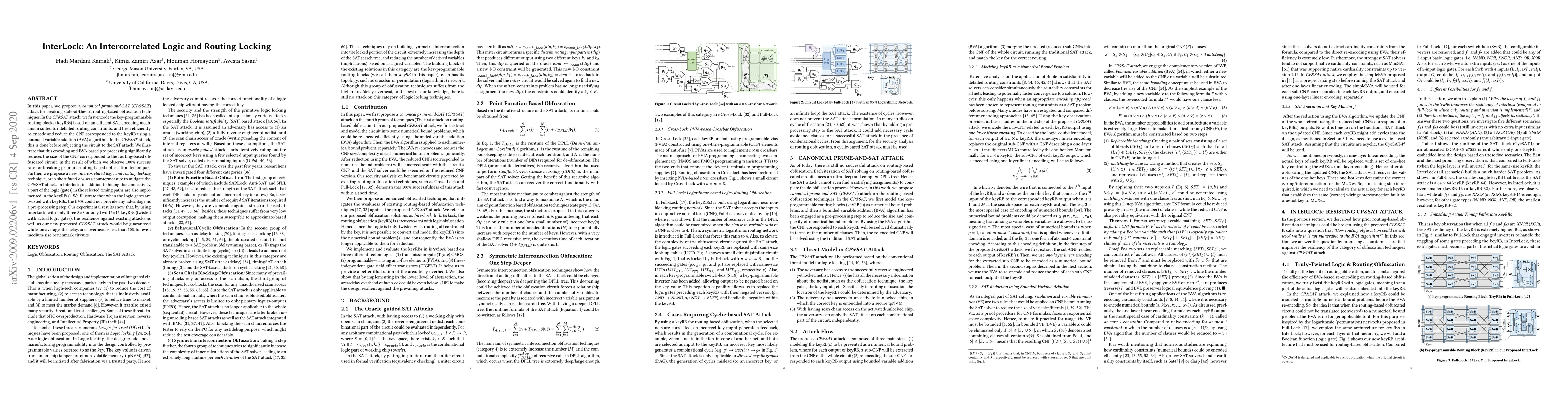 In this paper, we propose a canonical prune-and-SAT (CP&SAT) attack for breaking state-of-the-art routing-based obfuscation techniques. In the CP&SAT attack, we first encode the key-programmable routing blocks (keyRBs) based on an efficient SAT encoding mechanism suited for detailed routing constraints, and then efficiently re-encode and reduce the CNF corresponded to the keyRB using a bounded variable addition (BVA) algorithm. In the CP&SAT attack, this is done before subjecting the circuit to the SAT attack. We illustrate that this encoding and BVA-based pre-processing significantly reduces the size of the CNF corresponded to the routing-based obfuscated circuit, in the result of which we observe 100% success rate for breaking prior art routing-based obfuscation techniques. Further, we propose a new intercorrelated logic and routing locking technique, or in short InterLock, as a countermeasure to mitigate the CP&SAT attack. In Interlock, in addition to hiding the connectivity, a part of the logic (gates) in the selected timing paths are also implemented in the keyRB(s). We illustrate that when the logic gates are twisted with keyRBs, the BVA could not provide any advantage as a pre-processing step. Our experimental results show that, by using InterLock, with only three 8$\times$8 or only two 16x16 keyRBs (twisted with actual logic gates), the resilience against existing attacks as well as our new proposed CP&SAT attack would be guaranteed while, on average, the delay/area overhead is less than 10% for even medium-size benchmark circuits.