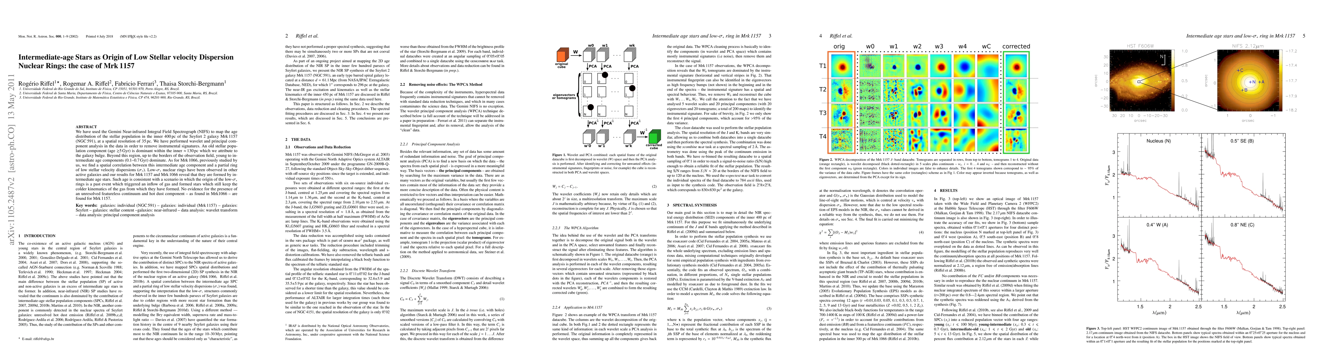 We have used the Gemini Near-infrared Integral Field Spectrograph (NIFS) to map the age distribution of the stellar population in the inner 400 pc of the Seyfert 2 galaxy Mrk 1157 (NGC 591), at a spatial resolution of 35 pc. We have performed wavelet and principal component analysis in the data in order to remove instrumental signatures. An old stellar population component (age > 5 Gyr) is dominant within the inner ~ 130 pc which we attribute to the galaxy bulge. Beyond this region, up to the borders of the observation field, young to intermediate age components (0.1--0.7 Gyr) dominate. As for Mrk 1066, previously studied by us, we find a spatial correlation between this intermediate age component and a partial ring of low stellar velocity dispersions (sigma*). Low-sigma* nuclear rings have been observed in other active galaxies and our results for Mrk 1157 and Mrk 1066 reveal that they are formed by intermediate age stars. Such age is consistent with a scenario in which the origin of the low-sigma* rings is a past event which triggered an inflow of gas and formed stars which still keep the colder kinematics of the gas from which they have formed. No evidence for the presence of an unresolved featureless continuum and hot dust component -- as found in Mrk1066 -- are found for Mrk 1157.