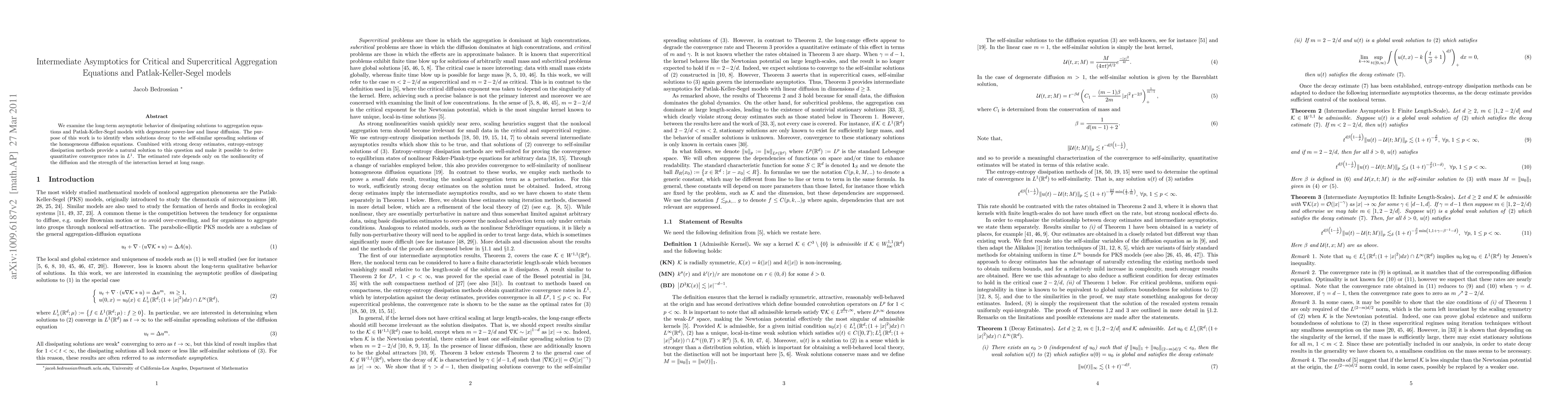 Researchers studied the long-term behavior of aggregation equations and Patlak-Keller-Segel models, finding that solutions decay to self-similar spreading solutions at a rate determined by nonlinearity and interaction kernel strength.
