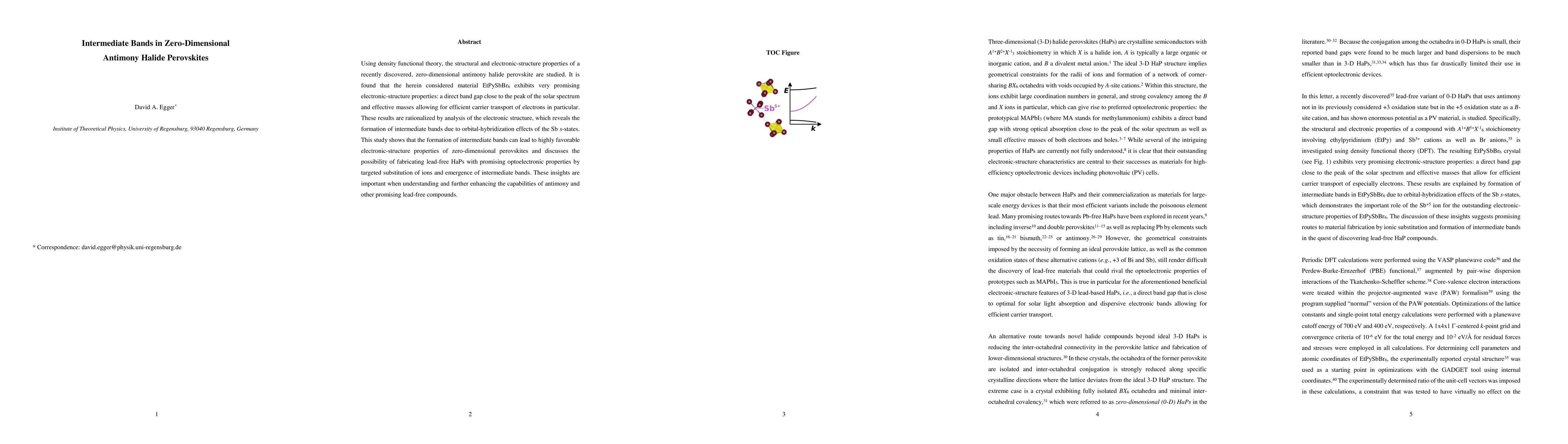 The application of DFT calculations to understand the electronic structure and intermediate band formation in zero-dimensional antimony halide perovskites.