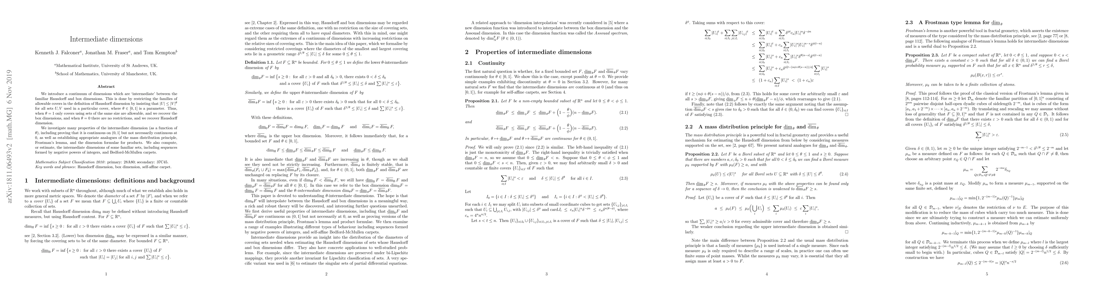 This paper introduces a continuum of intermediate dimensions between Hausdorff and box dimensions, defined by restricting allowable covers based on a parameter $\theta \in [0,1]$. It explores properties of these intermediate dimensions and establishes continuity, analogues of key lemmas, and computes dimensions for specific sets.