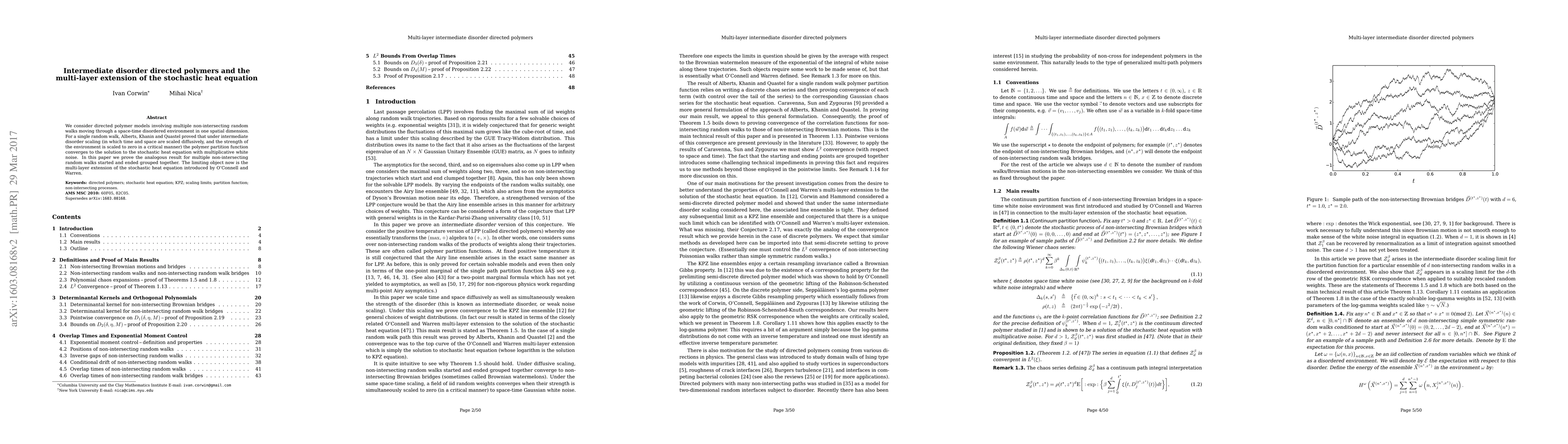 We consider directed polymer models involving multiple non-intersecting random walks moving through a space-time disordered environment in one spatial dimension. For a single random walk, Alberts, Khanin and Quastel proved that under intermediate disorder scaling (in which time and space are scaled diffusively, and the strength of the environment is scaled to zero in a critical manner) the polymer partition function converges to the solution to the stochastic heat equation with multiplicative white noise. In this paper we prove the analogous result for multiple non-intersecting random walks started and ended grouped together. The limiting object now is the multi-layer extension of the stochastic heat equation introduced by O'Connell and Warren.